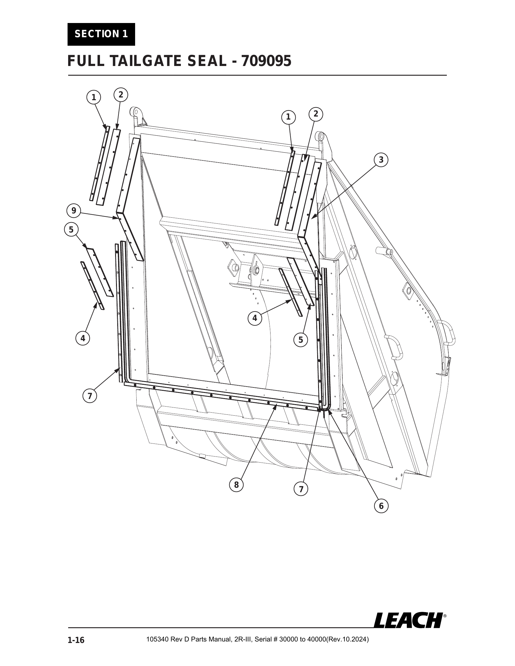 2R-III 30K/40K - PG 016 - Section 1 - FULL TAILGATE SEAL - 709095