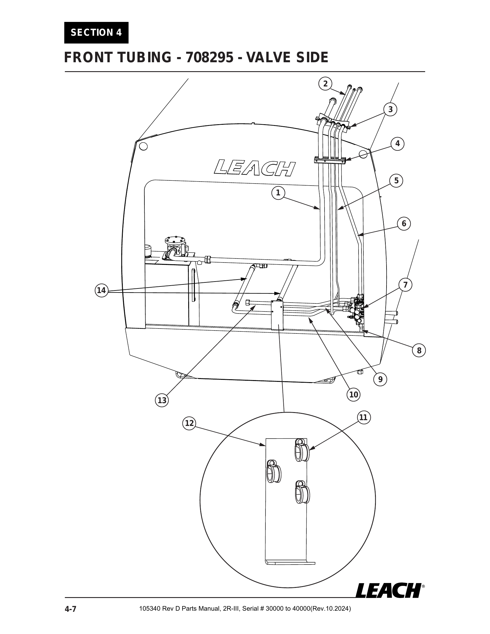 2R-III 30K/40K - PG 054 - Section 4 - FRONT TUBING - 708295 - VALVE SIDE