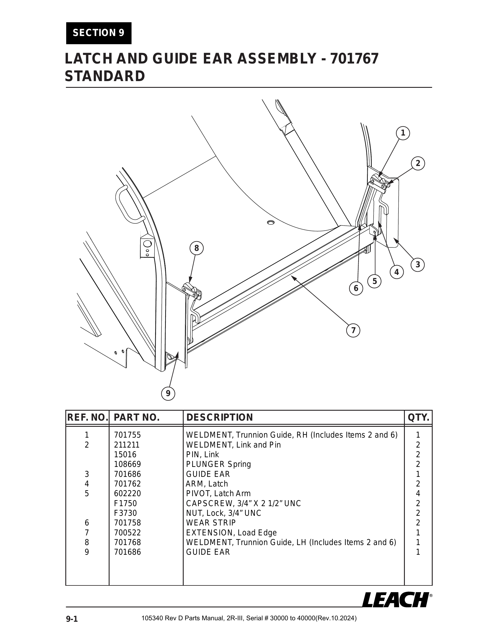 2R-III 30K/40K - PG 110 - Section 9 - LATCH AND GUIDE EAR ASSEMBLY - 701767 STANDARD