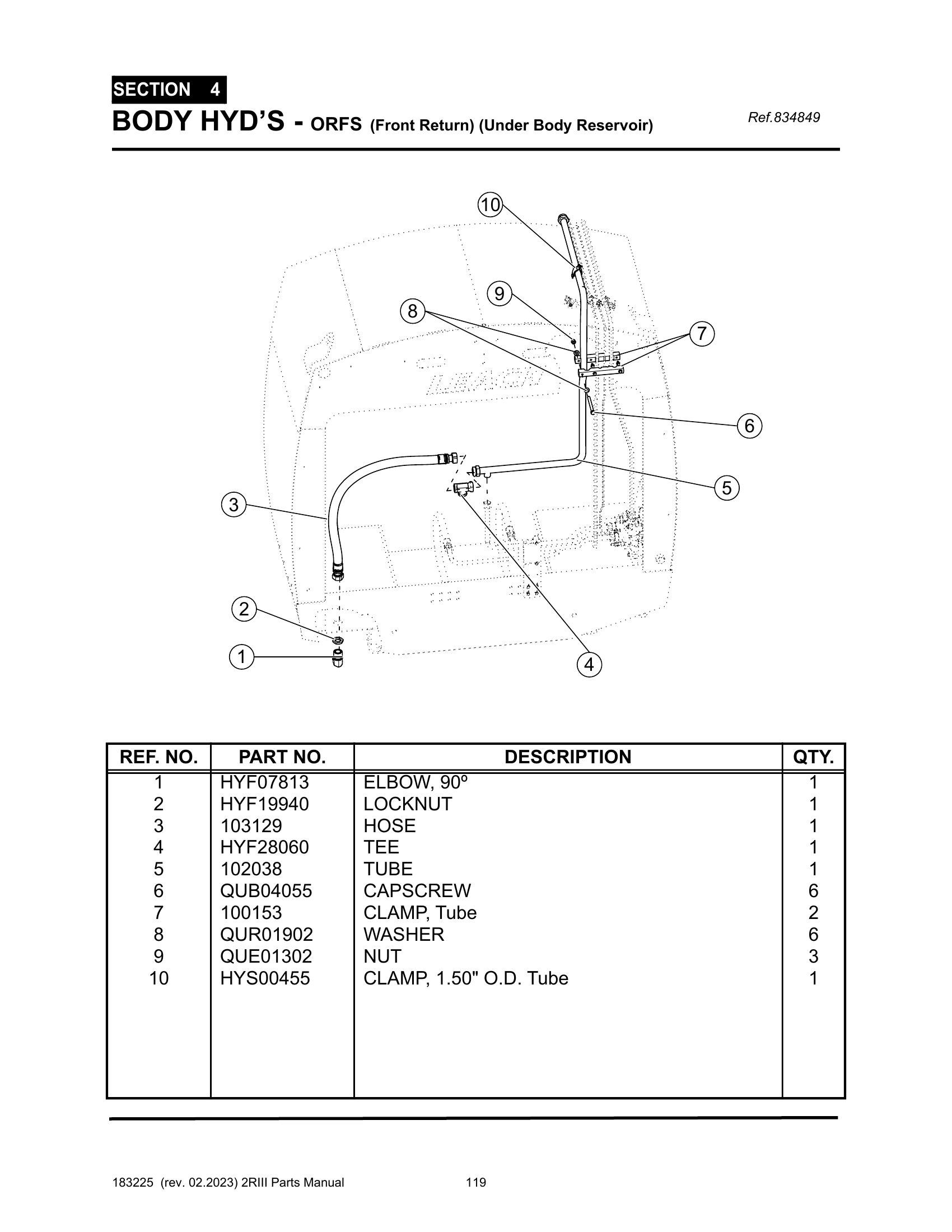2R-III - PG 119 - SECTION 4 - BODY HYD’S - ORFS (Front Return) (Under Body Reservoir)