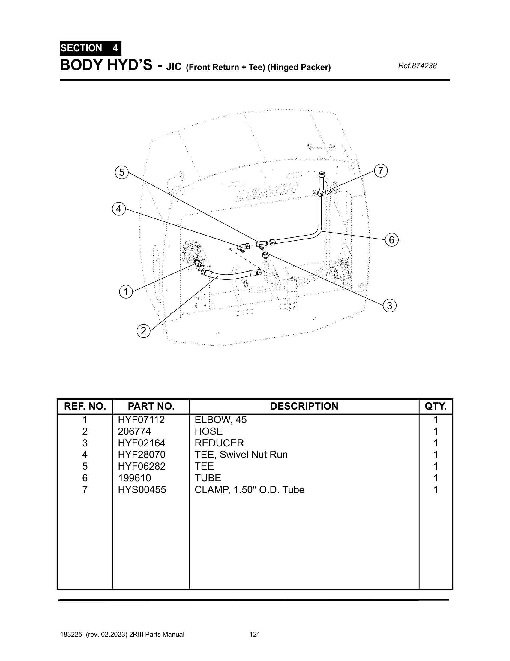 2R-III - PG 121 - SECTION 4 - BODY HYD’S - JIC (Front Return + Tee) (Hinged Packer)