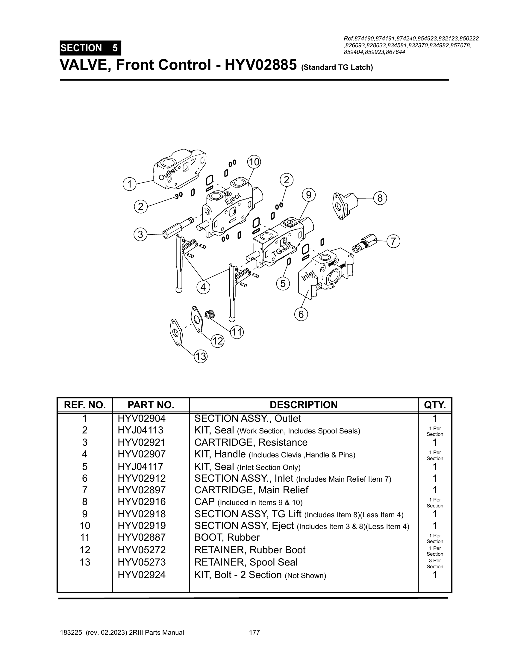 2R-III - PG 177 - SECTION 5 - VALVE, Front Control - HYV02885 (Standard TG Latch)