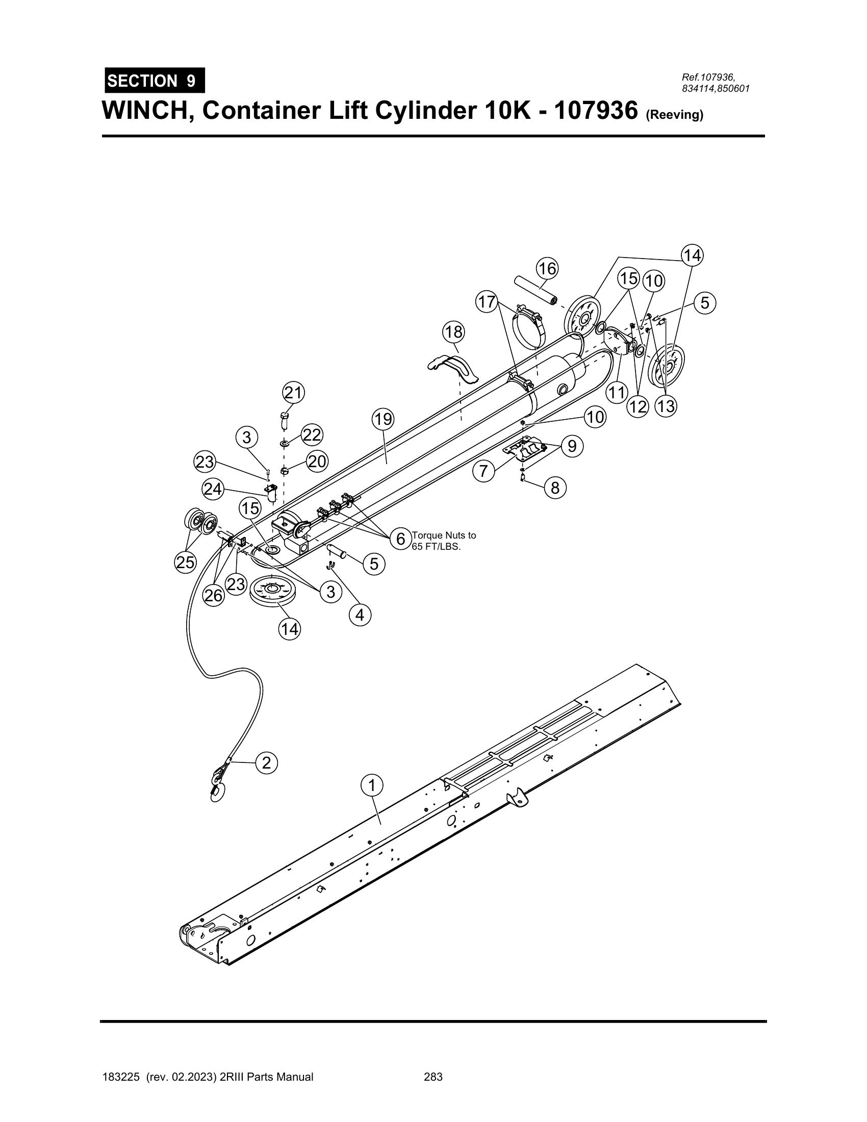 2R-III - PG 283 - SECTION 9 - WINCH, Container Lift Cylinder 10K - 107936 (Reeving)