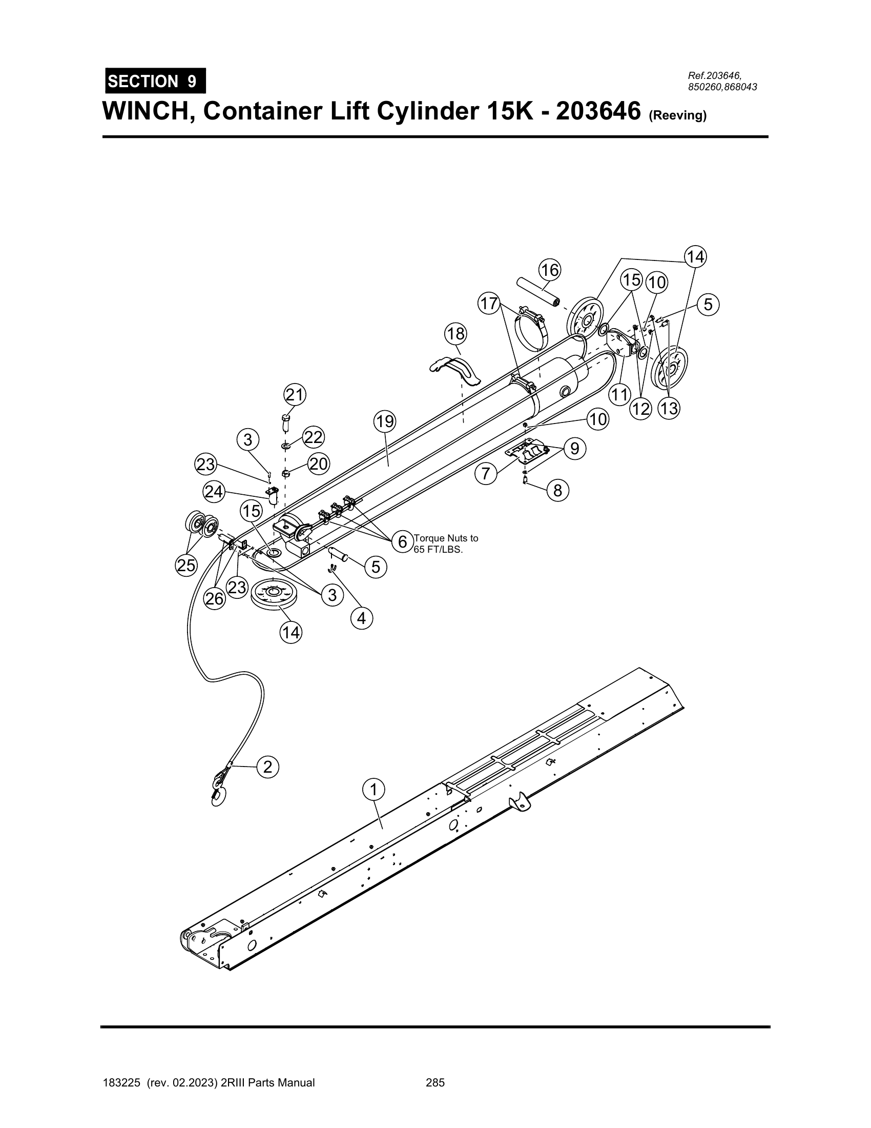 2R-III - PG 285 - SECTION 9 - WINCH, Container Lift Cylinder 15K - 203646 (Reeving)