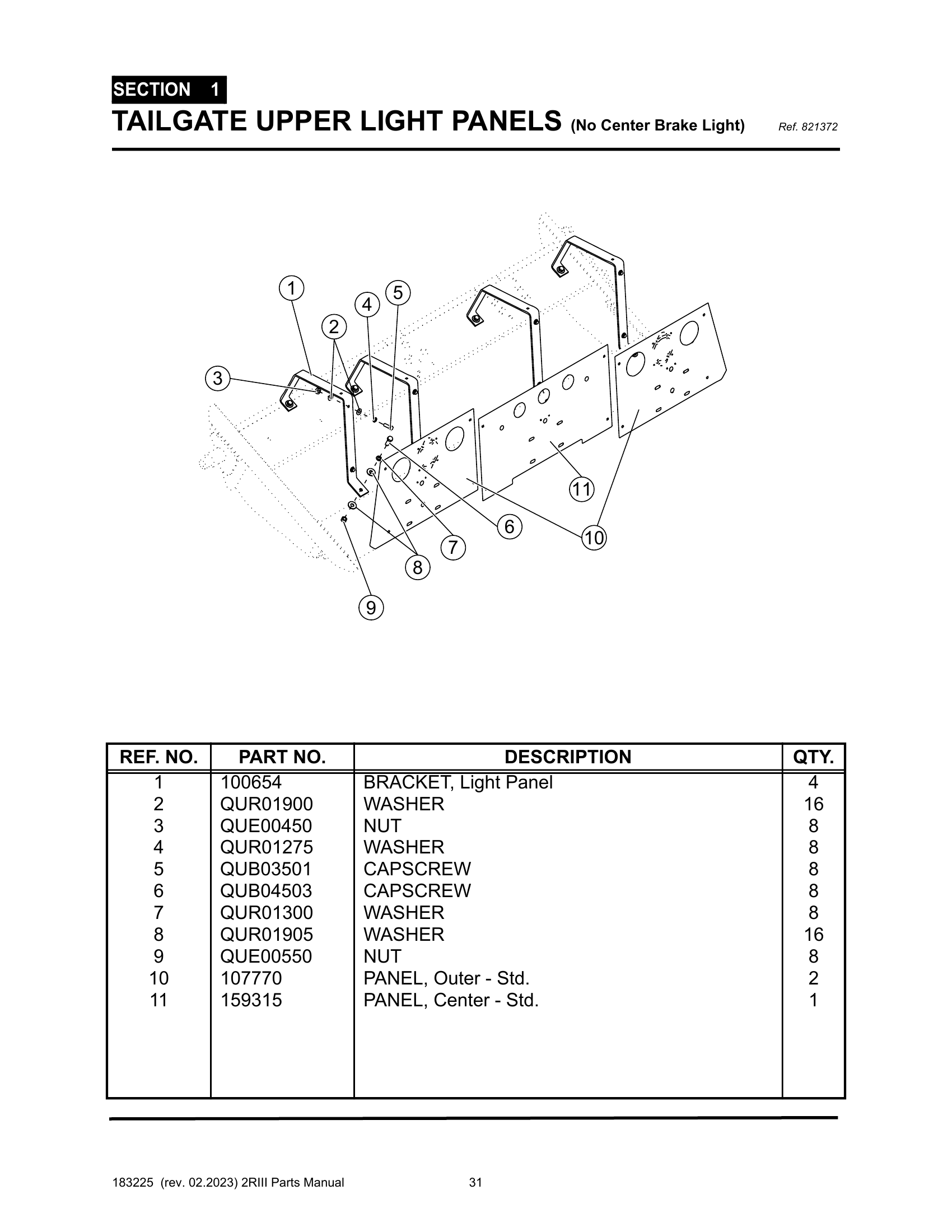 2R-III - PG 031 - SECTION 1 - TAILGATE UPPER LIGHT PANELS (No Center Brake Light)
