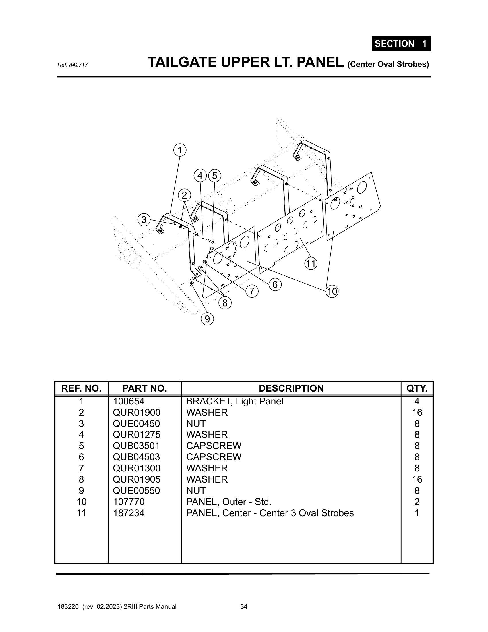 2R-III - PG 034 - SECTION 1 - TAILGATE UPPER LT. PANEL (Center Oval Strobes)