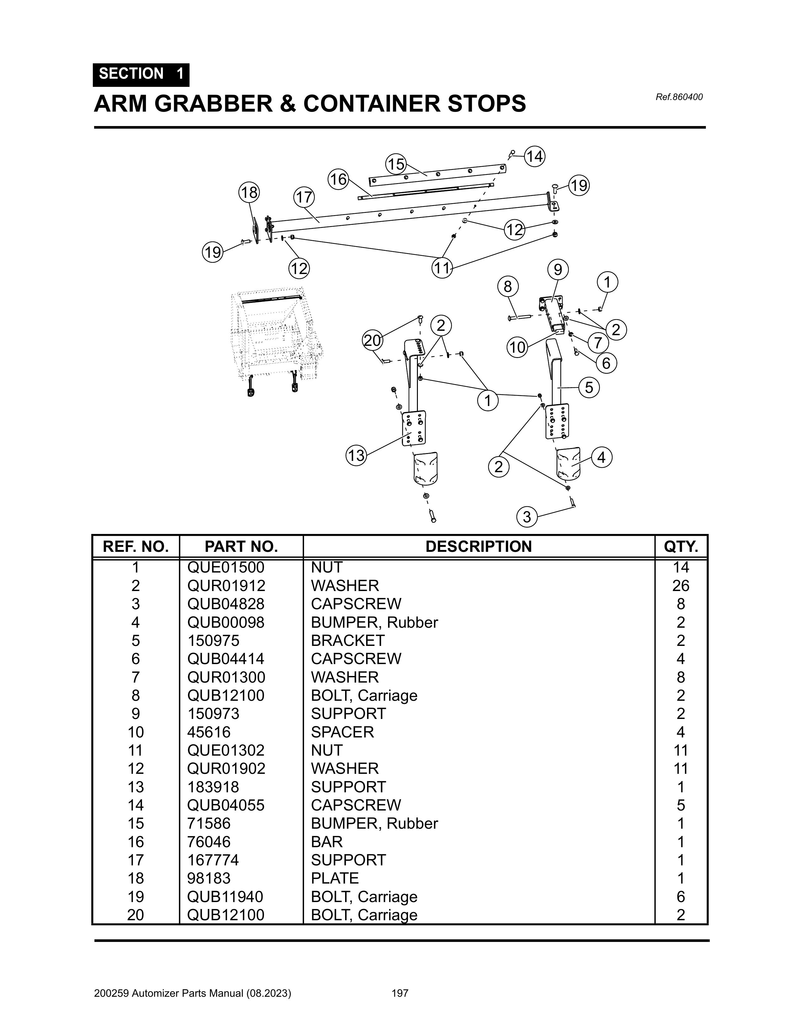 Automizer - PG 197 - Section 1 - ARM GRABBER & CONTAINER STOPS - 860400