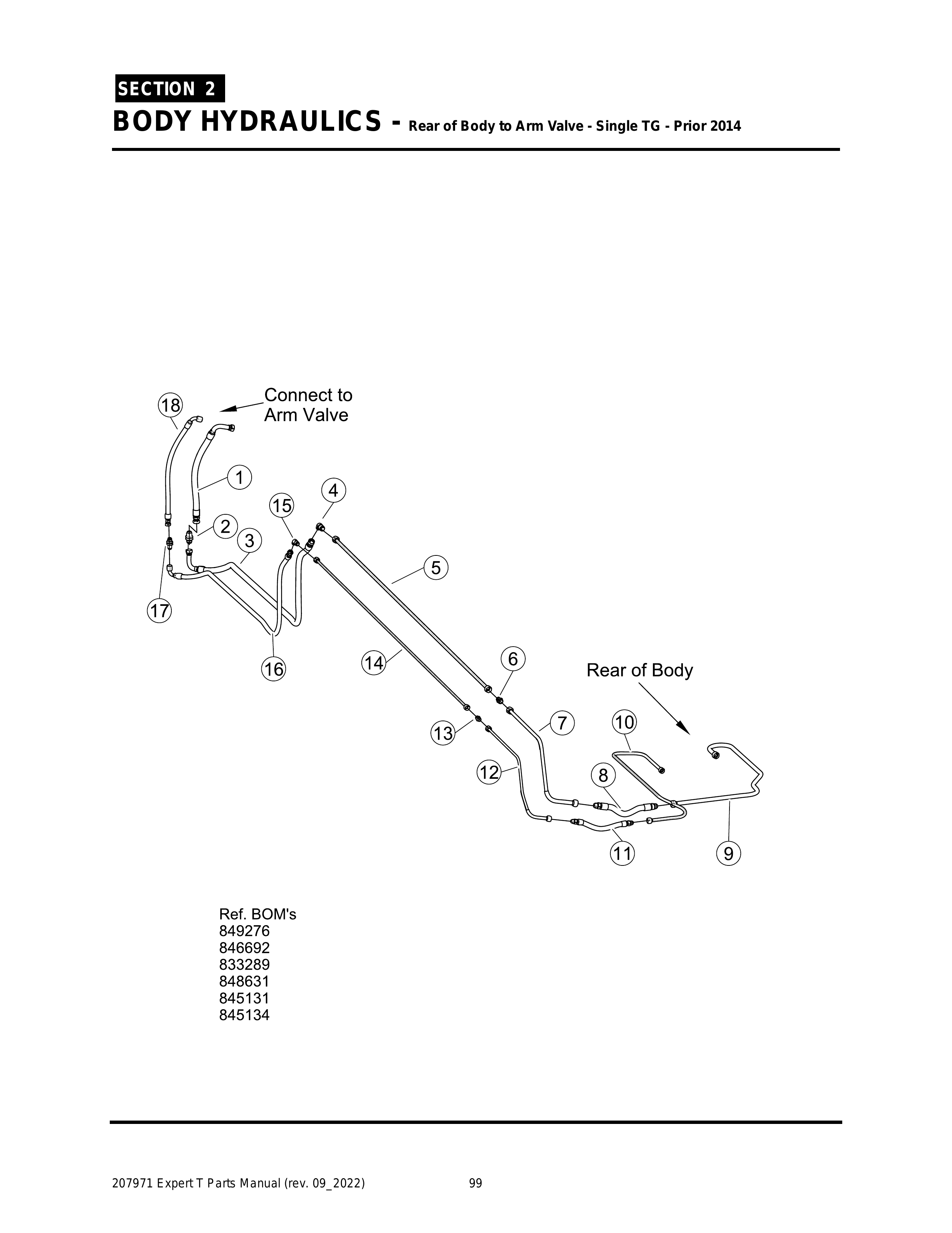 EXPERT - PG 099 - Section 2 - BODY HYDRAULICS - Rear of Body to Arm Valve - Single TG - Prior 2014