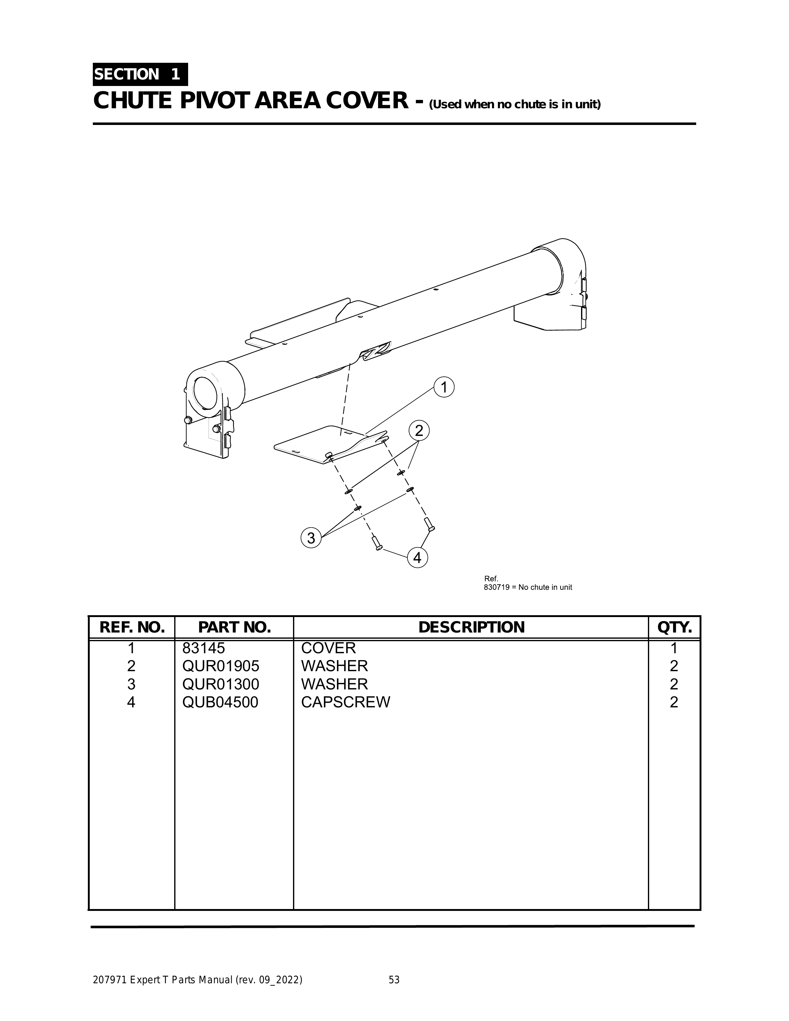 EXPERT - PG 053 - Section 1 - CHUTE PIVOT AREA COVER - (Used when no chute is in unit)