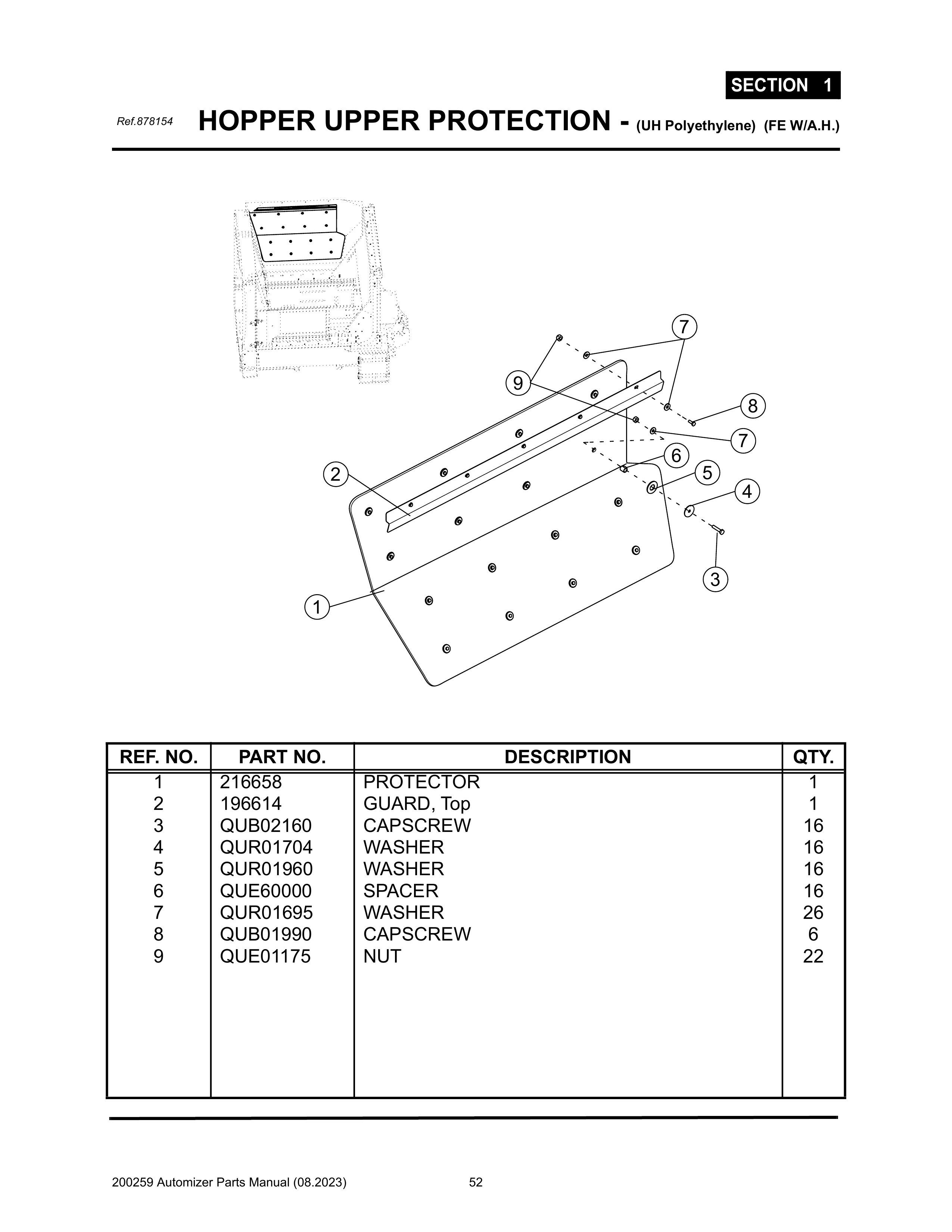Automizer - PG 052 - Section 1 - HOPPER UPPER PROTECTION - (UH Polyethylene) (FE W/R.H.)