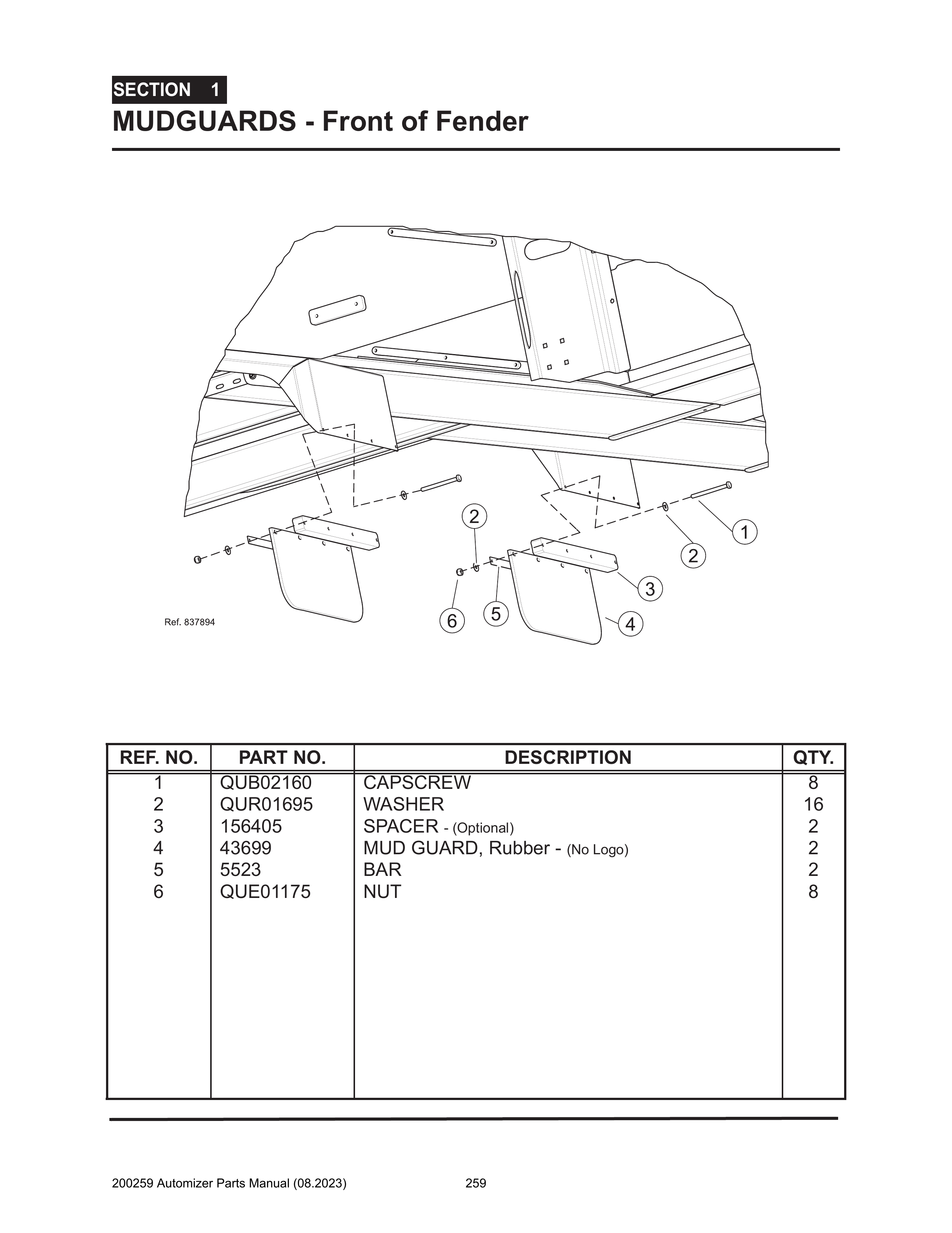 Automizer - PG 259 - Section 1 - MUD GUARDS - Front of Fender