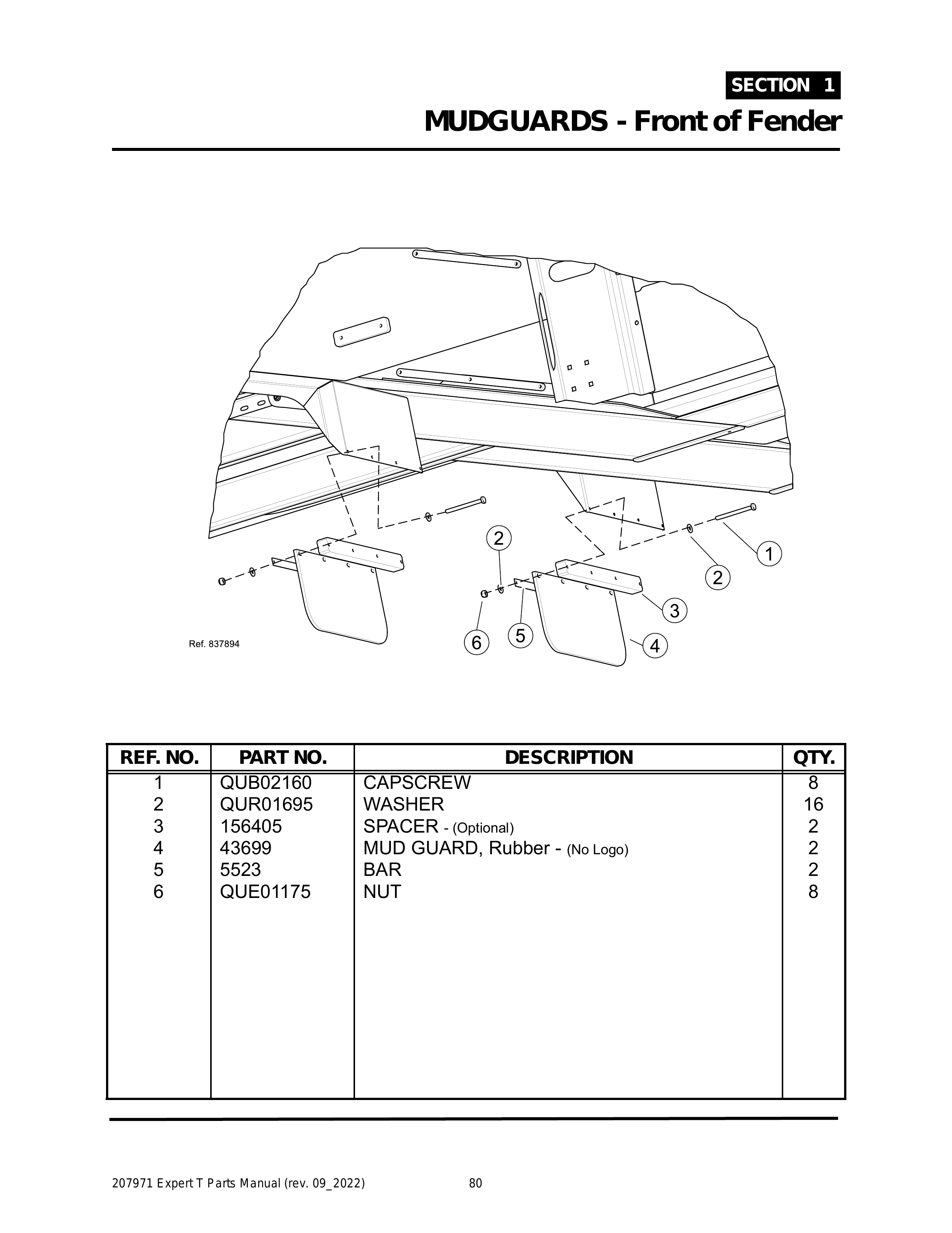 EXPERT - PG 080 - Section 1 - MUDGUARDS - Front of Fender