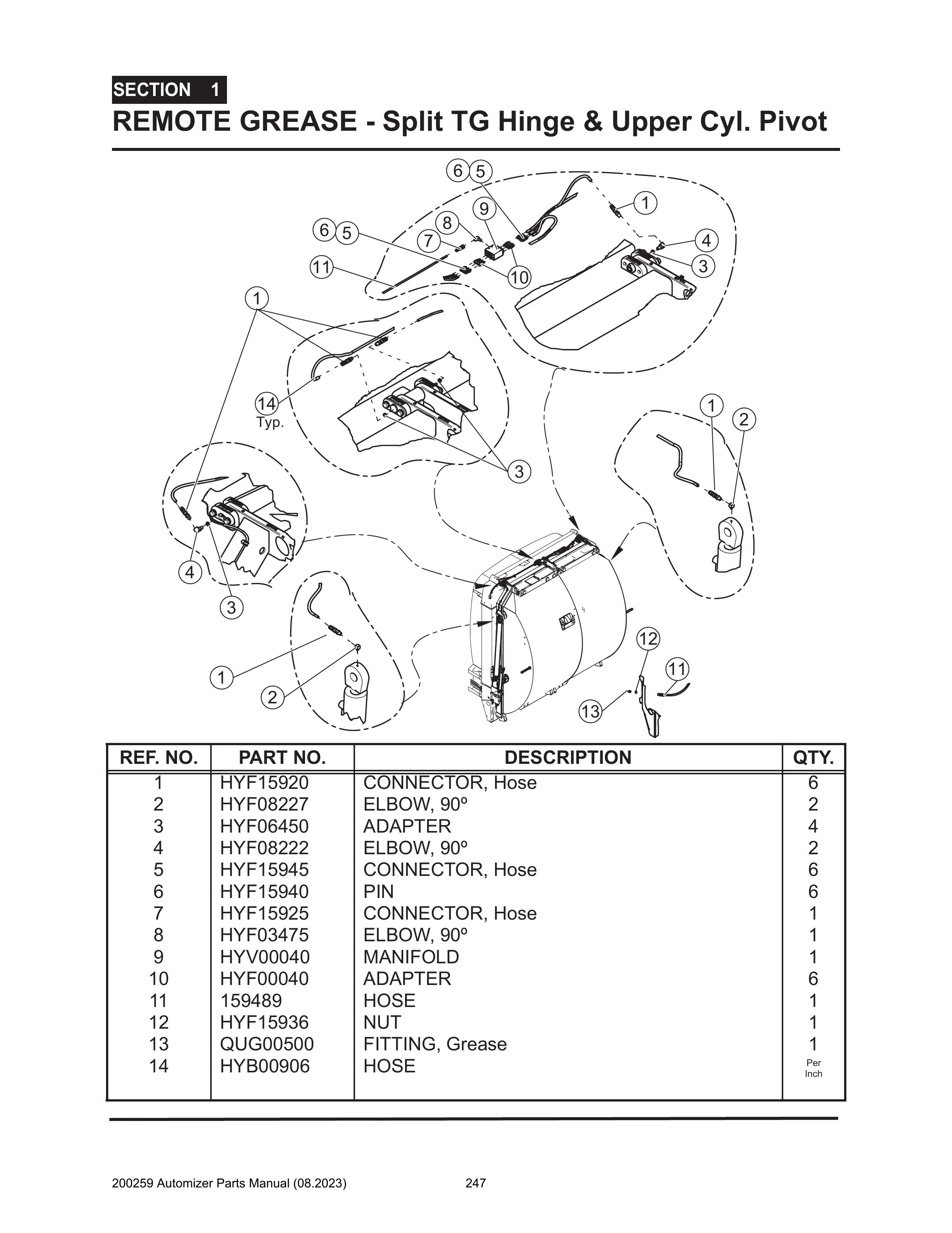 Automizer - PG 247 - Section 1 - REMOTE GREASE - Split TG Hinge & Upper Cyl. Pivot