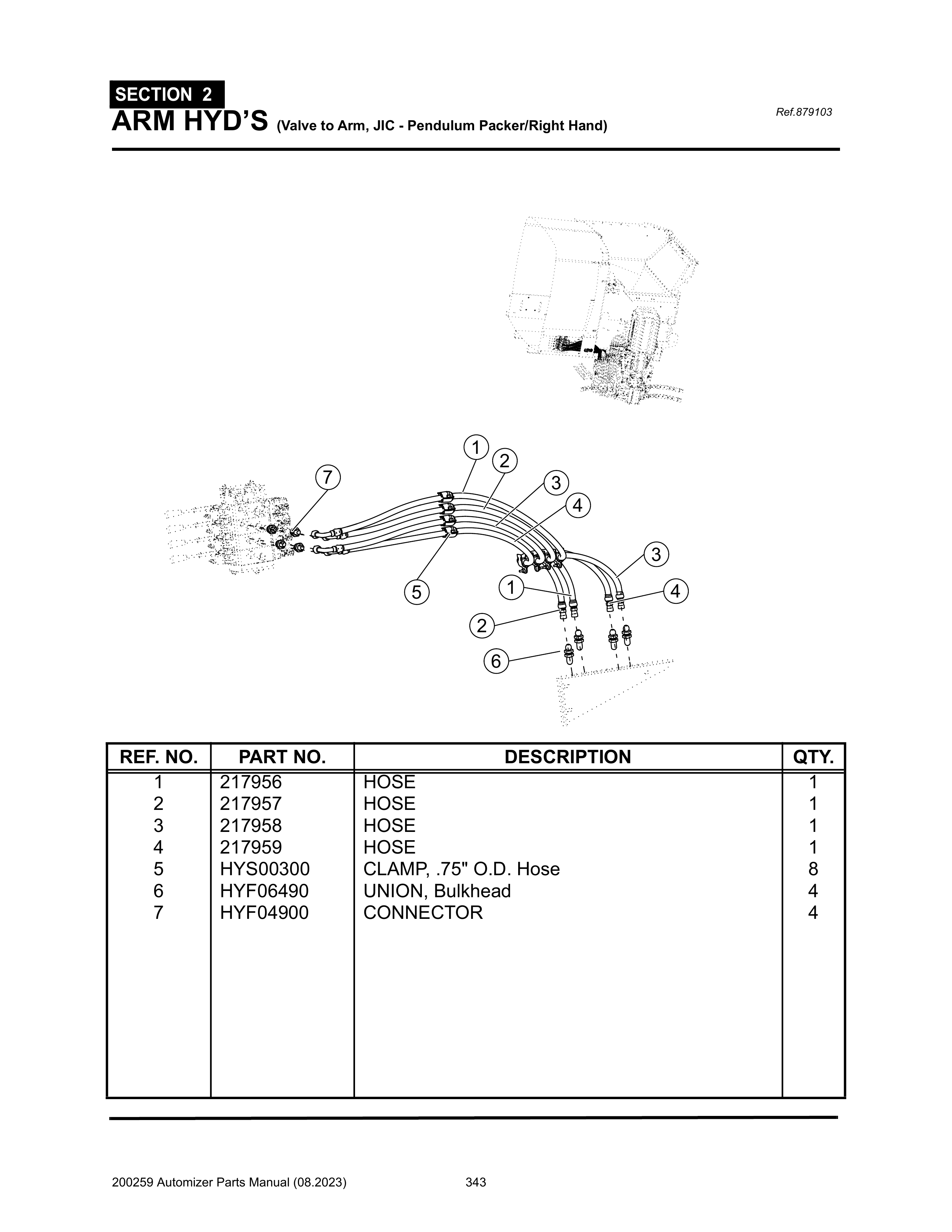 Automizer - PG 343 - Section 2 - ARM HYD’S (Valve to Arm, JIC - Pendulum Packer/Right Hand) 879103