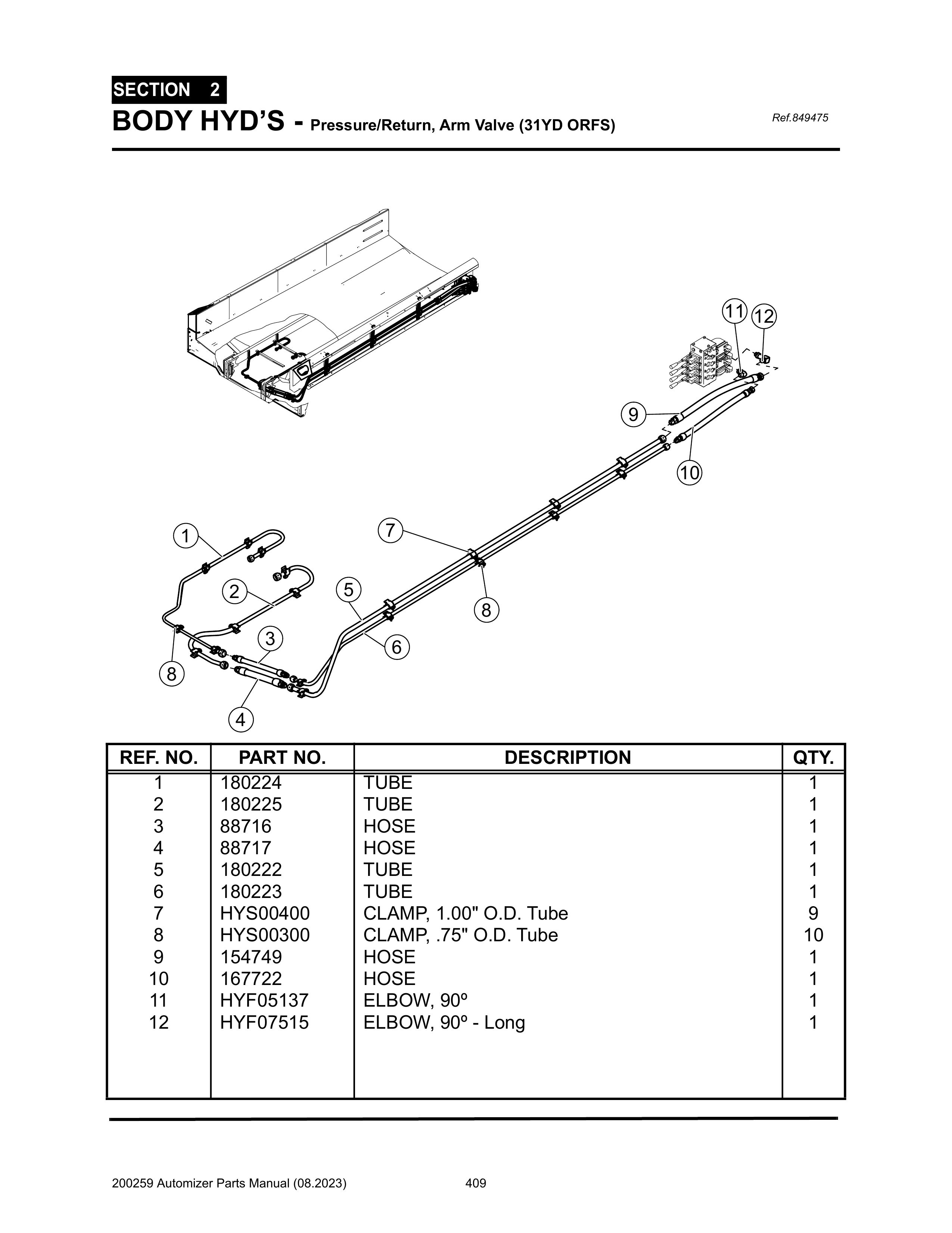 Automizer - PG 409 - Section 2 - BODY HYD’S - Pressure/Return, Arm Valve (31YD ORFS)