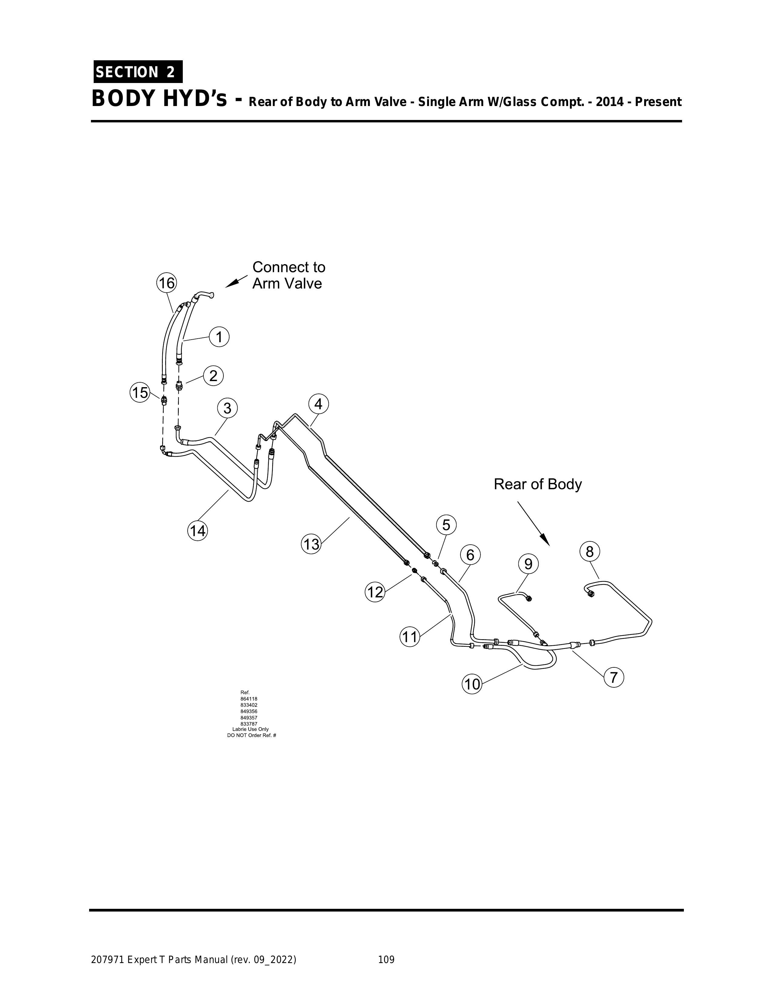 EXPERT - PG 109 - Section 2 - BODY HYD’s - Rear of Body to Arm Valve - Single Arm W/Glass Compt. - 2014 - Present