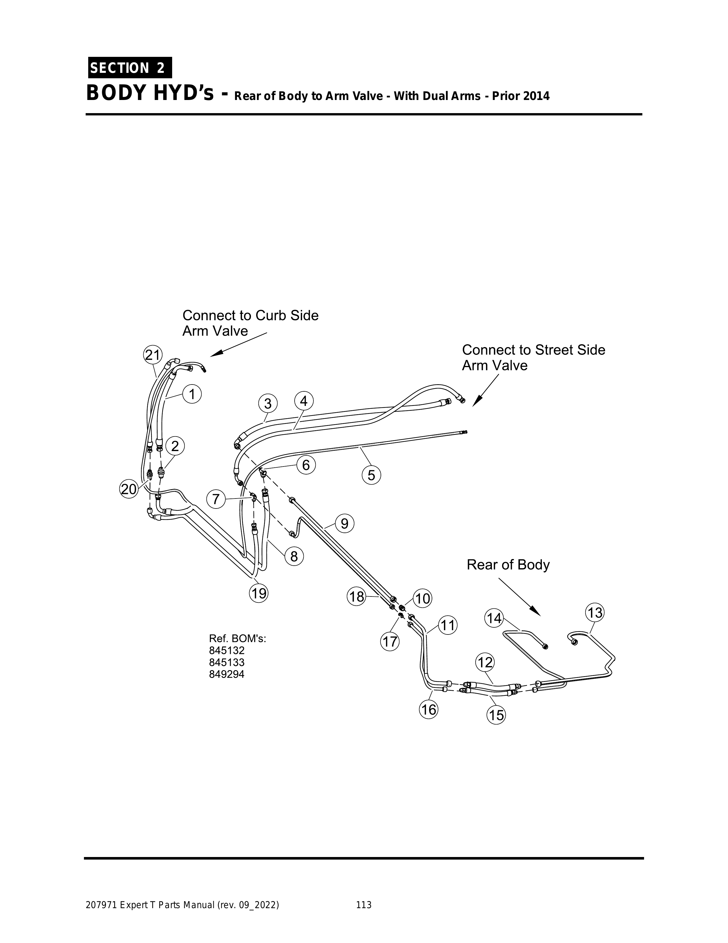 EXPERT - PG 113 - Section 2 - BODY HYD’s - Rear of Body to Arm Valve - With Dual Arms - Prior 2014
