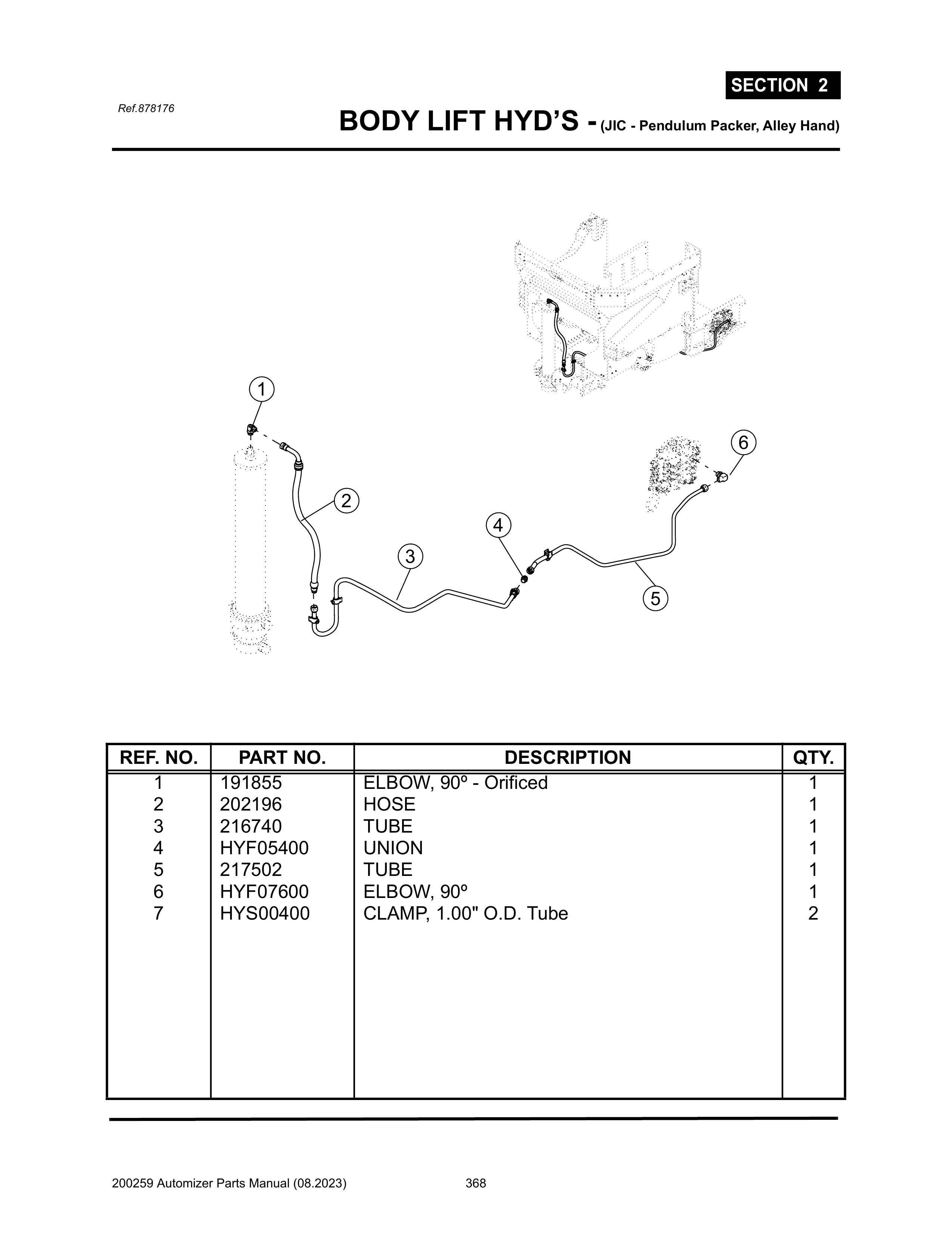 Automizer - PG 368 - Section 2 - BODY LIFT HYD’S - (JIC - Pendulum Packer, Alley Hand)
