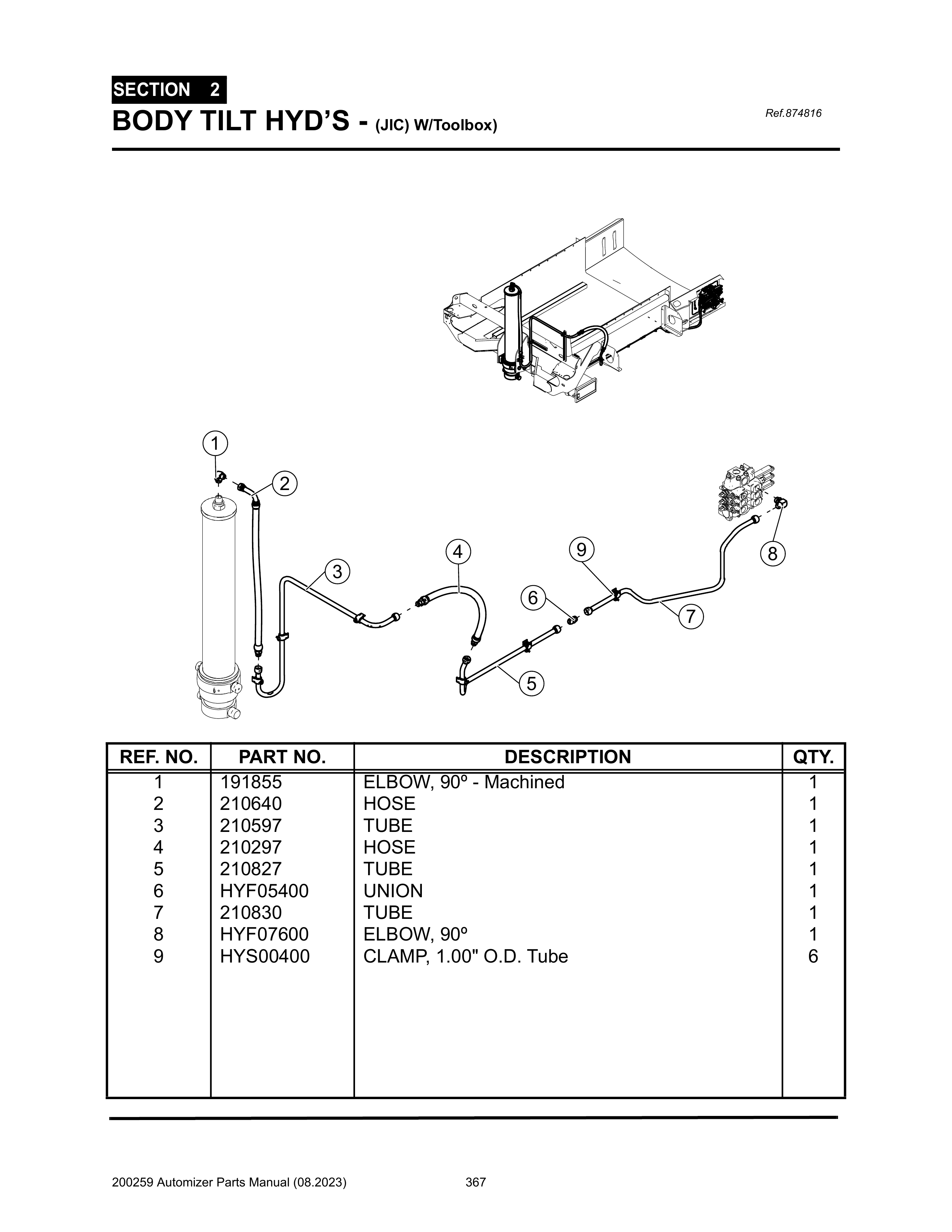 Automizer - PG 367 - Section 2 - BODY TILT HYD’S - (JIC) W/Toolbox) 874816