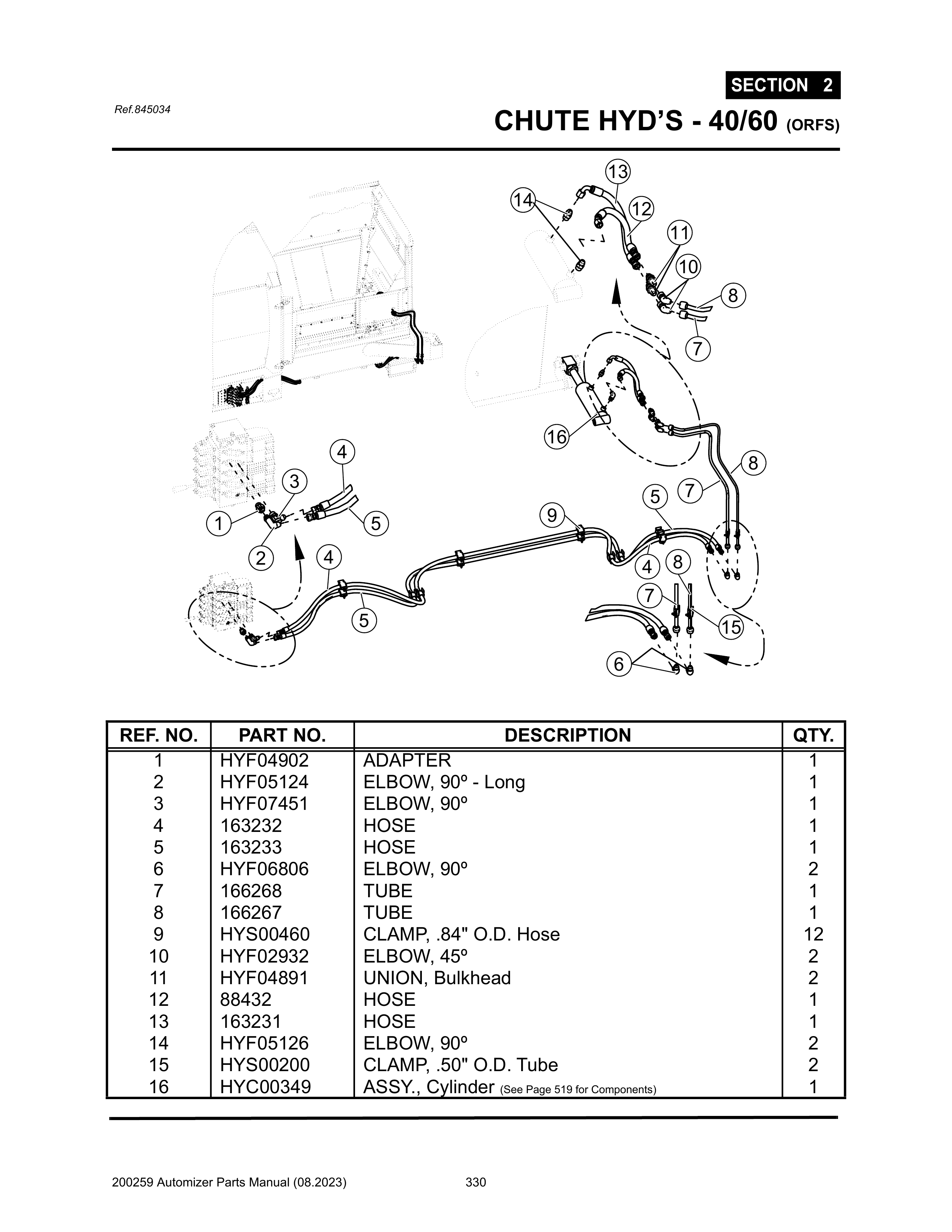 Automizer - PG 330 - Section 2 - CHUTE HYD’S - 40/60 (ORFS)