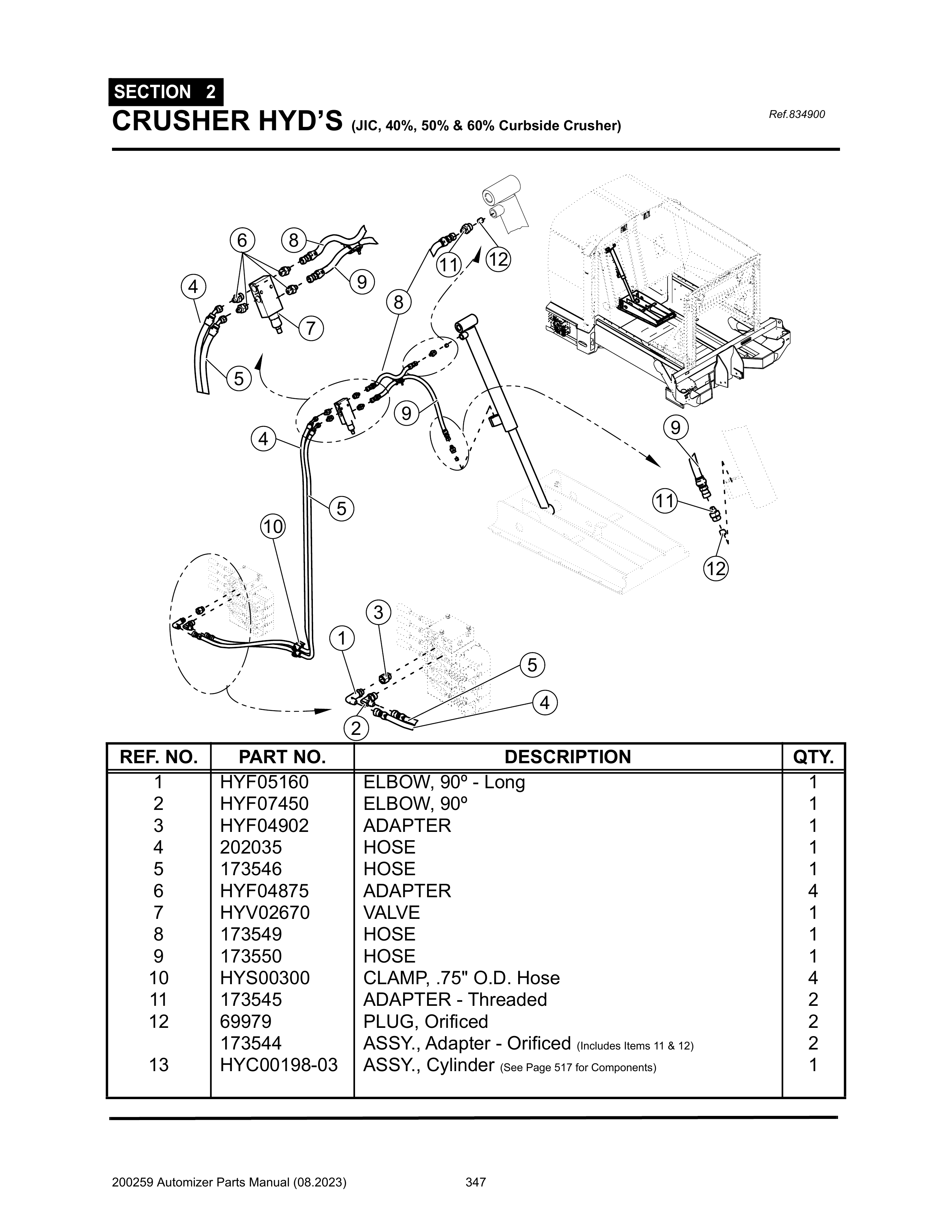 Automizer - PG 347 - Section 2 - CRUSHER HYD’S (JIC, 40%, 50% & 60% Curbside Crusher)