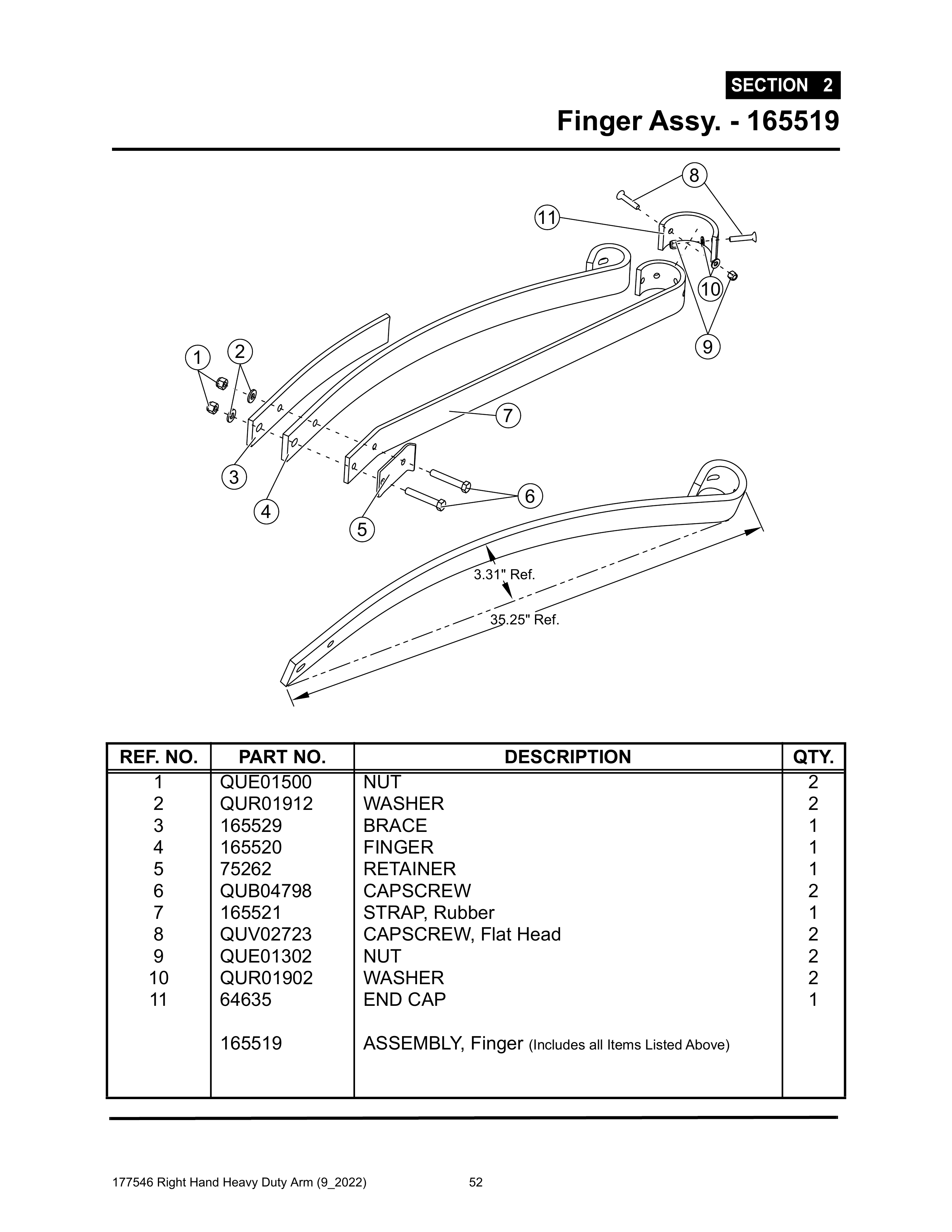 Section 2 - Finger Assy. - 165519 - Heavy Duty RH Arm