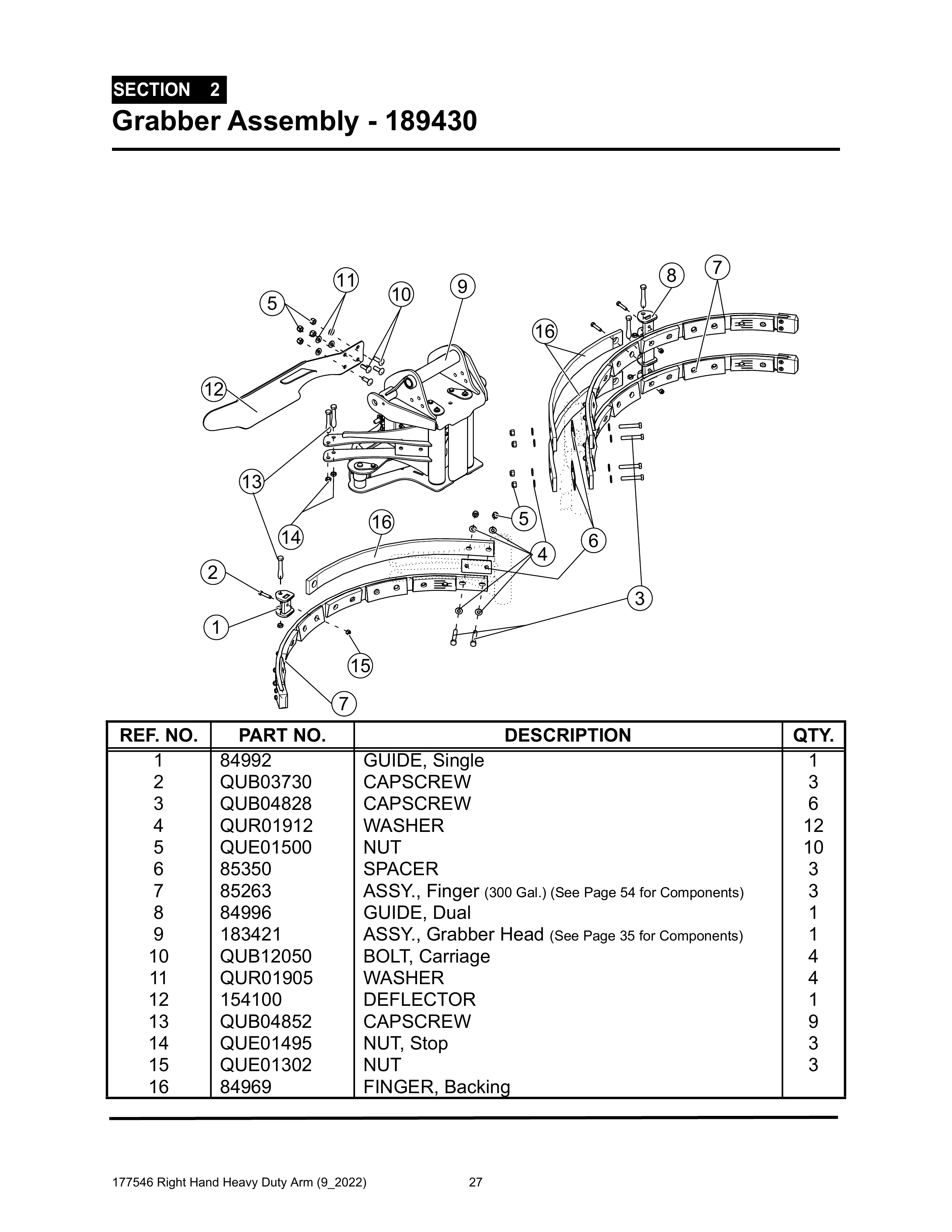 Section 2 - Grabber Assembly - 189430 - Heavy Duty RH Arm