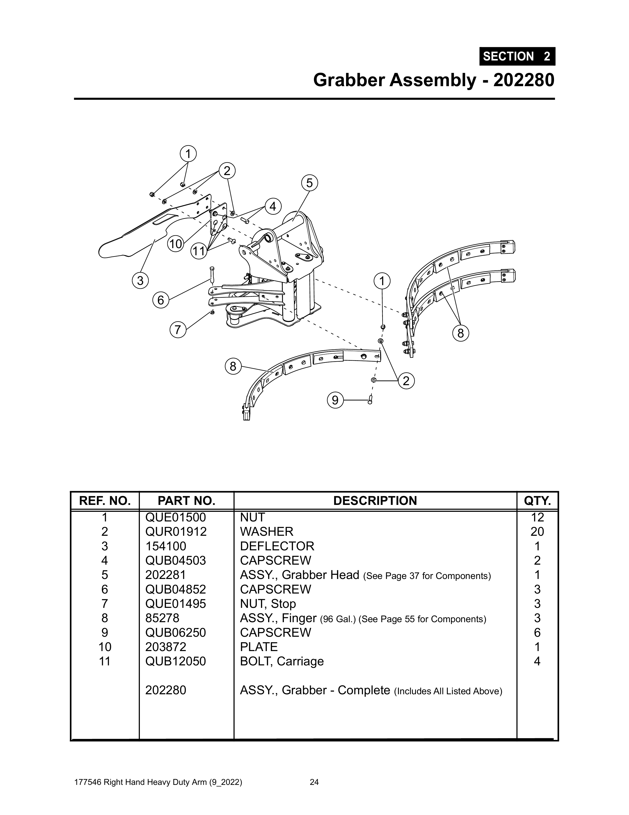 Section 2 - Grabber Assembly - 202280 - Heavy Duty RH Arm