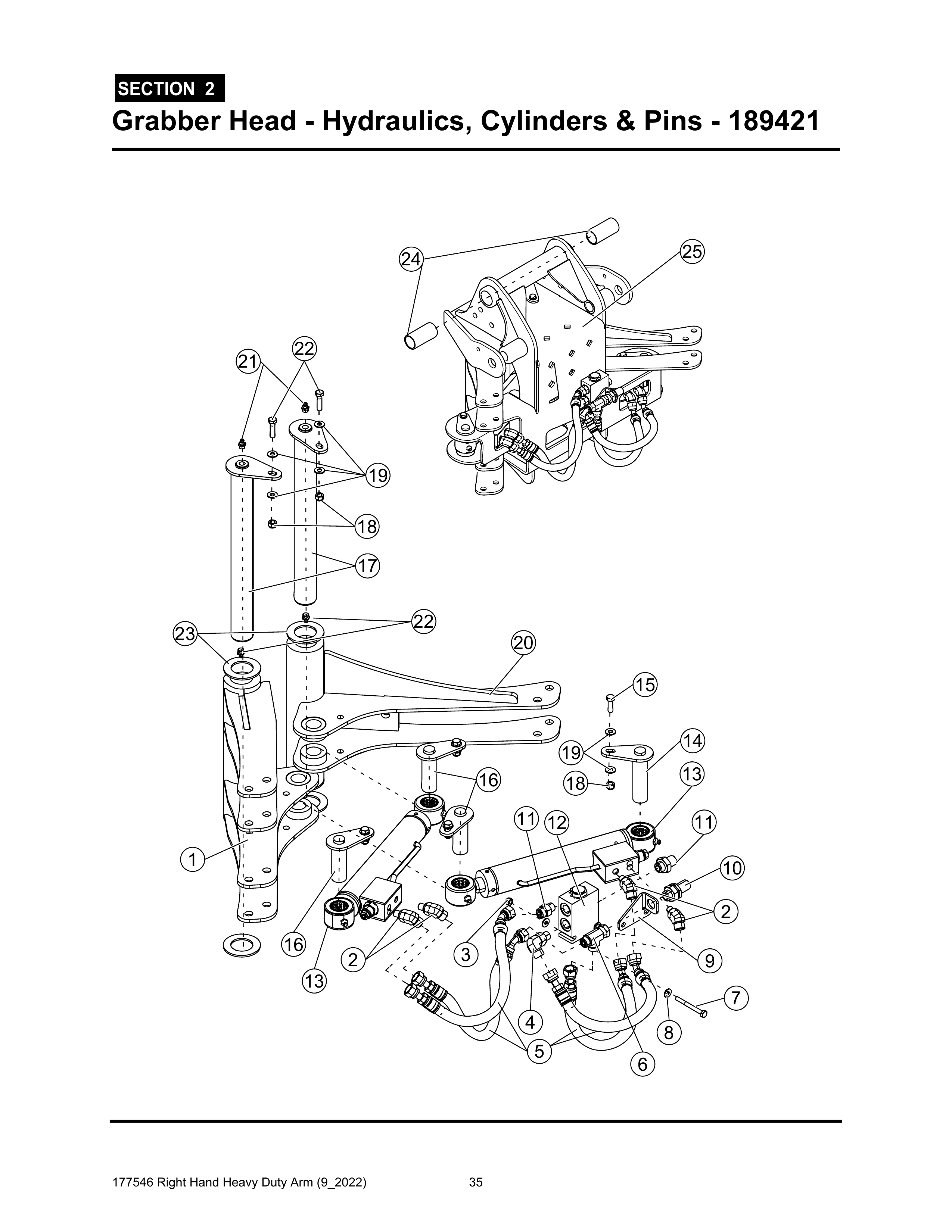 Section 2 - Grabber Head - Hydraulics, Cylinders & Pins - 189421 - Heavy Duty RH Arm