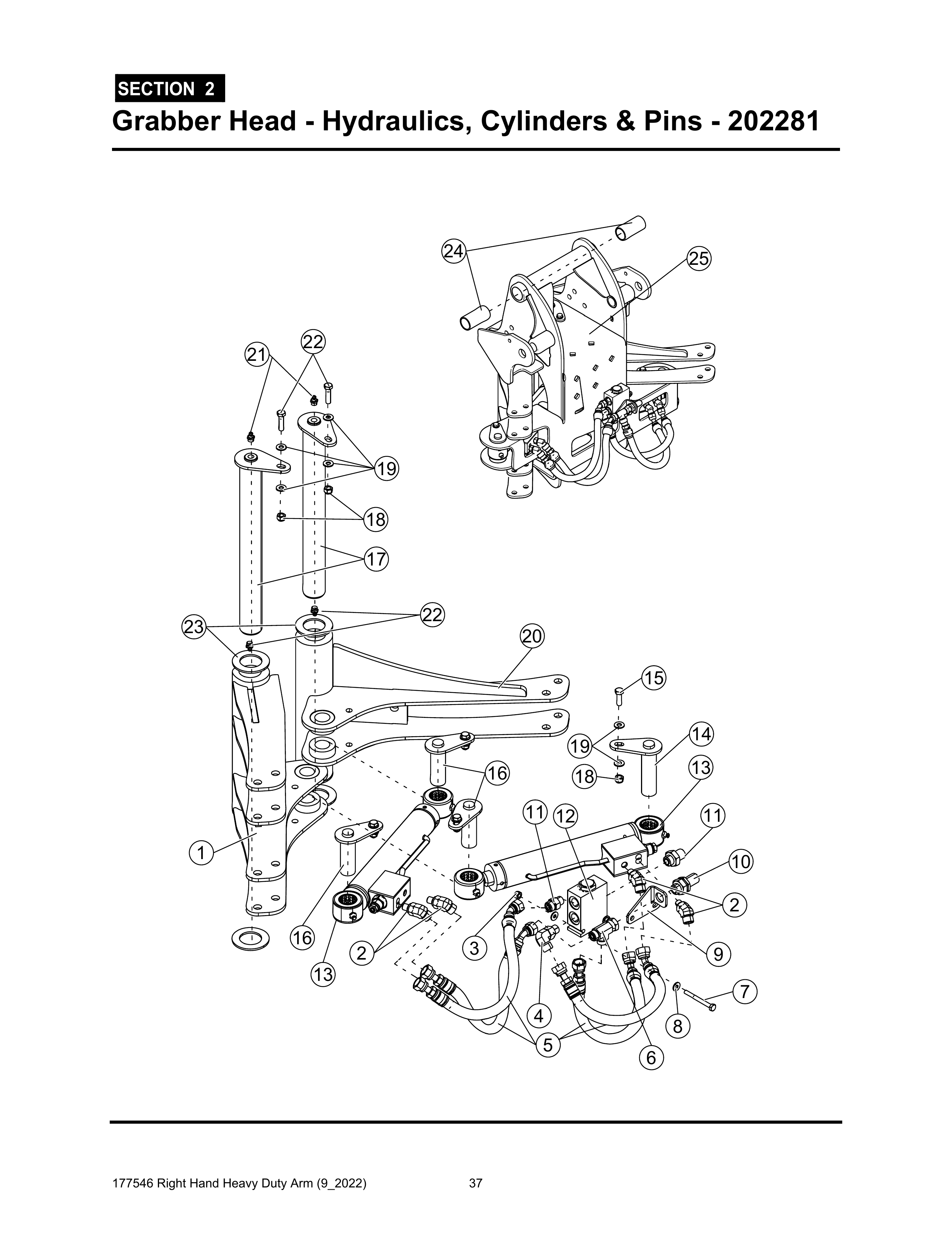 Section 2 - Grabber Head - Hydraulics, Cylinders & Pins - 202281 - Heavy Duty RH Arm