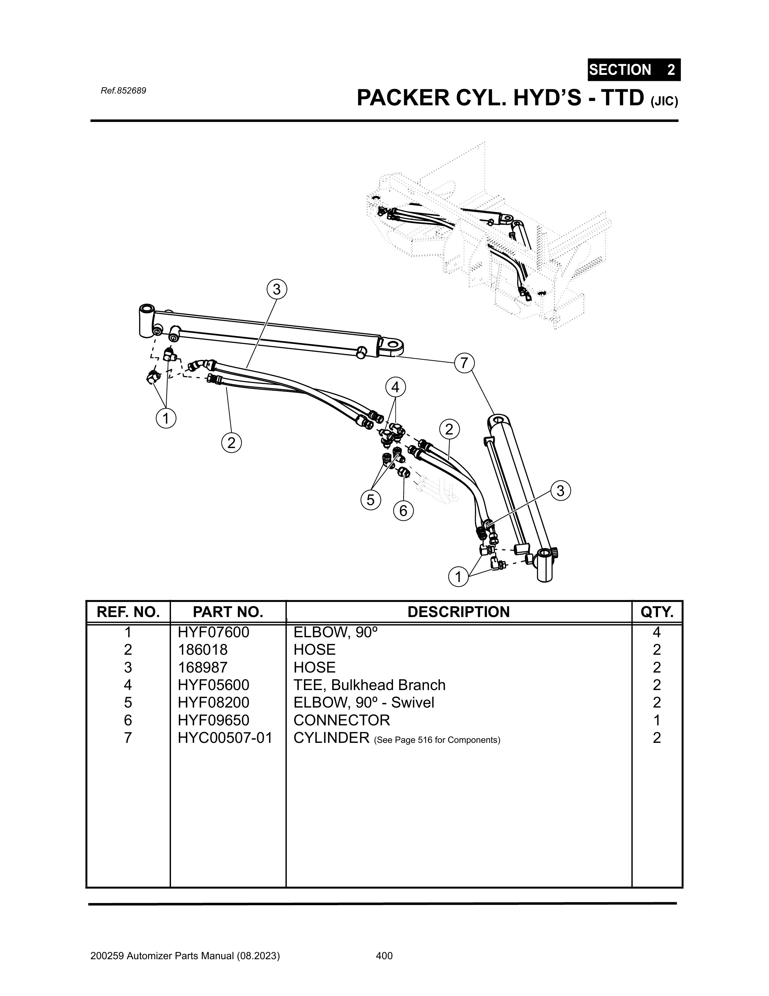 Automizer - PG 400 - Section 2 - PACKER CYL. HYD’S - TTD (JIC) 852689
