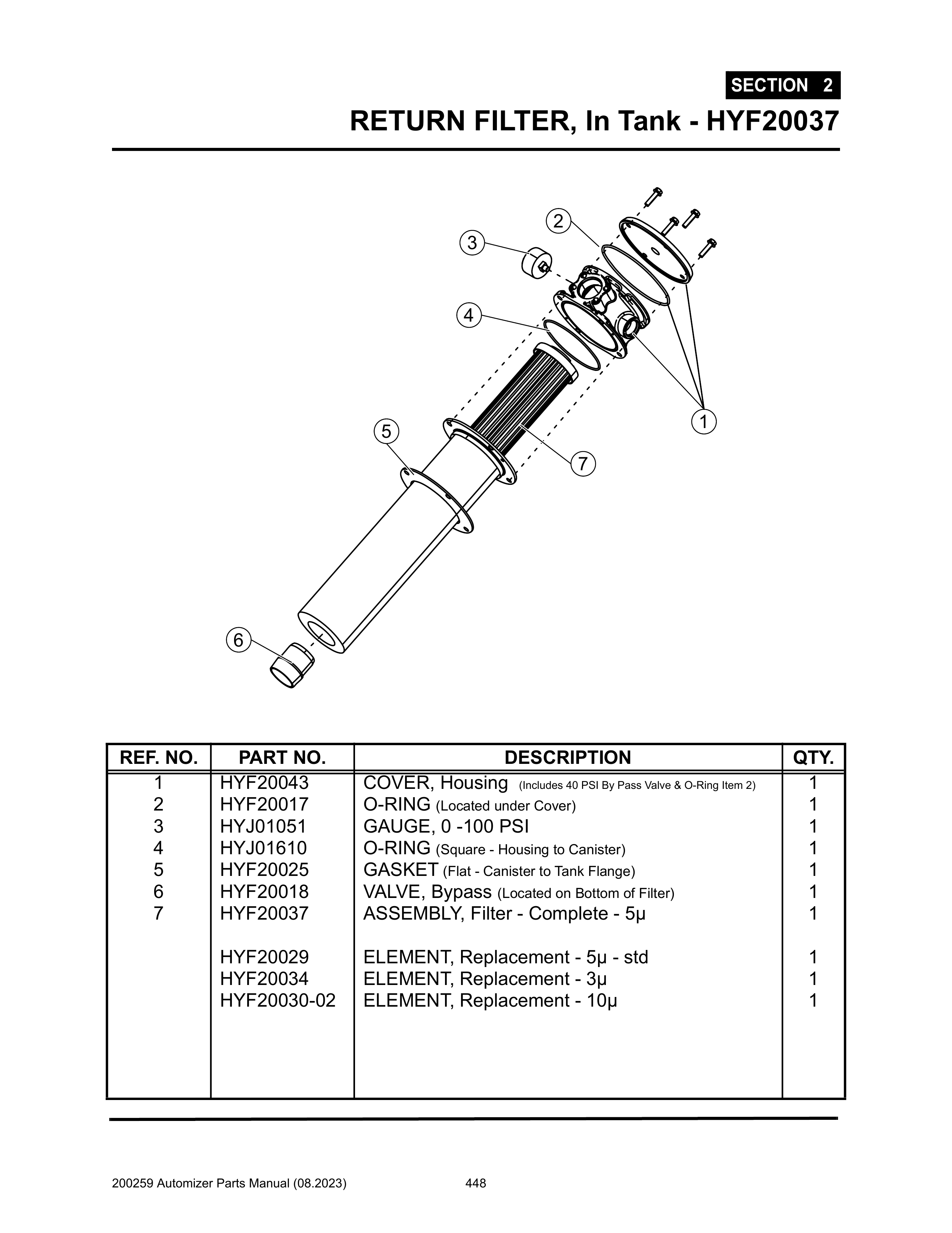 Automizer - PG 448 Section 2 - RETURN FILTER, In Tank - HYF20037