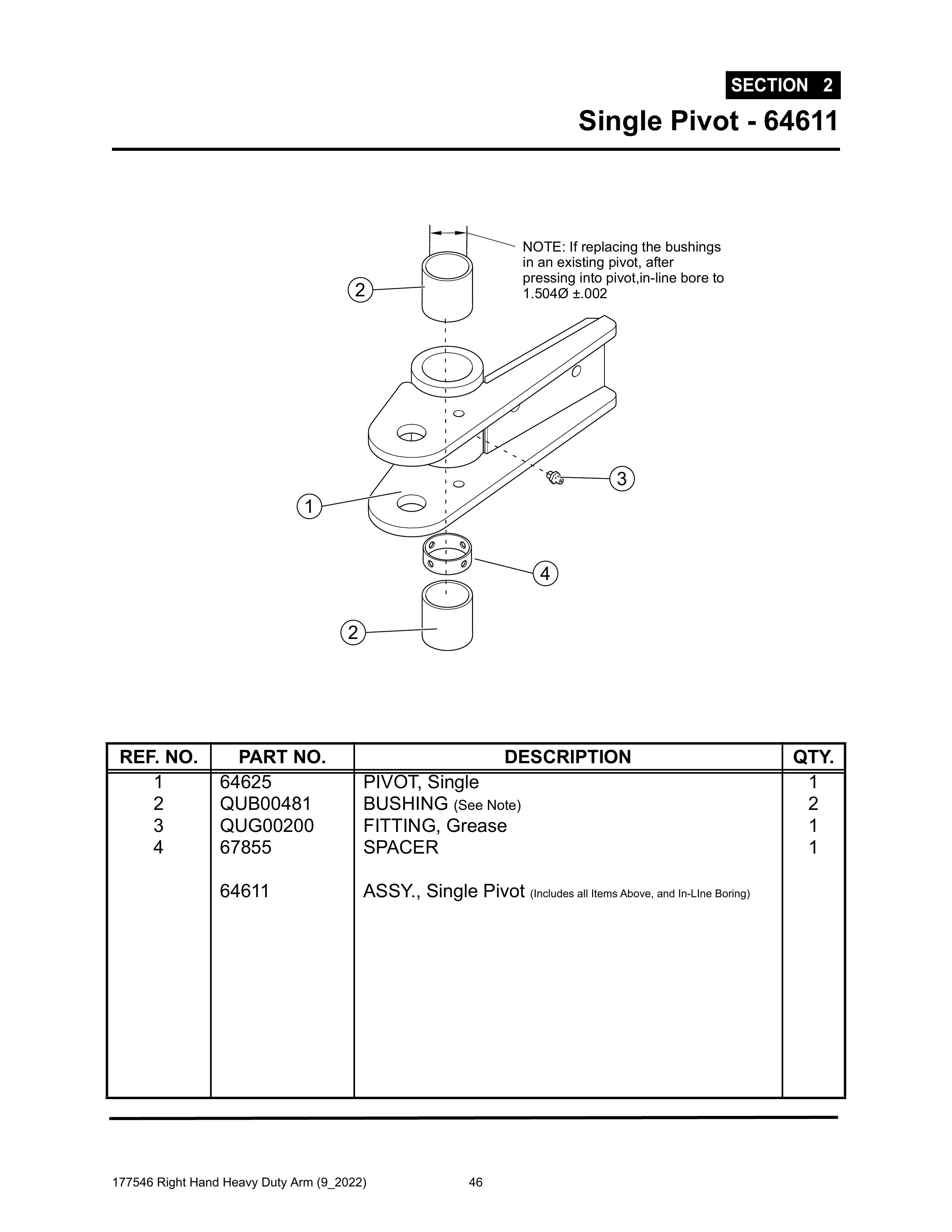 Section 2 - Single Pivot - 64611 - Heavy Duty RH Arm