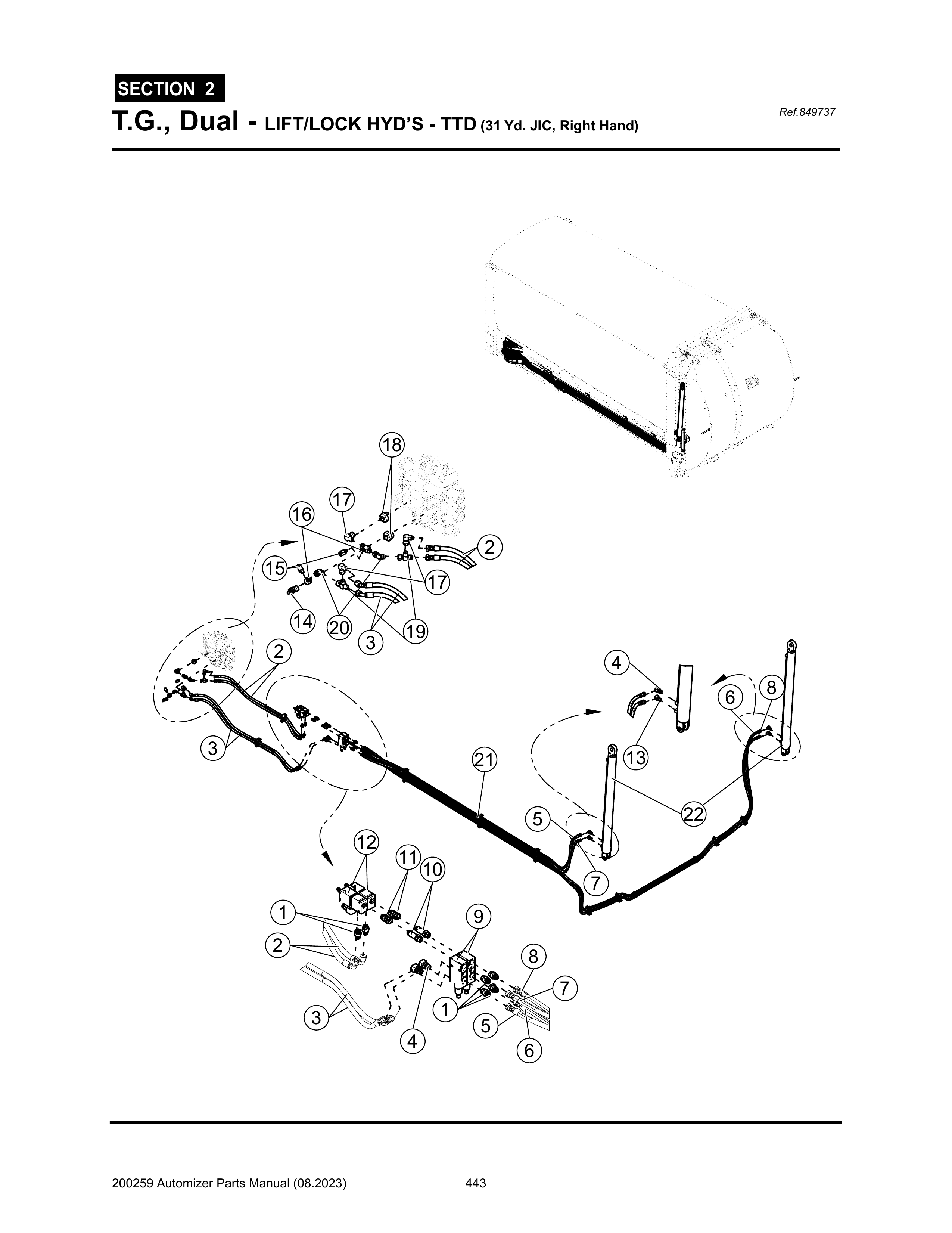 Automizer - PG 443 - Section 2 - T.G., Dual - LIFT/LOCK HYD’S - TTD (31 Yd. JIC, Right Hand)