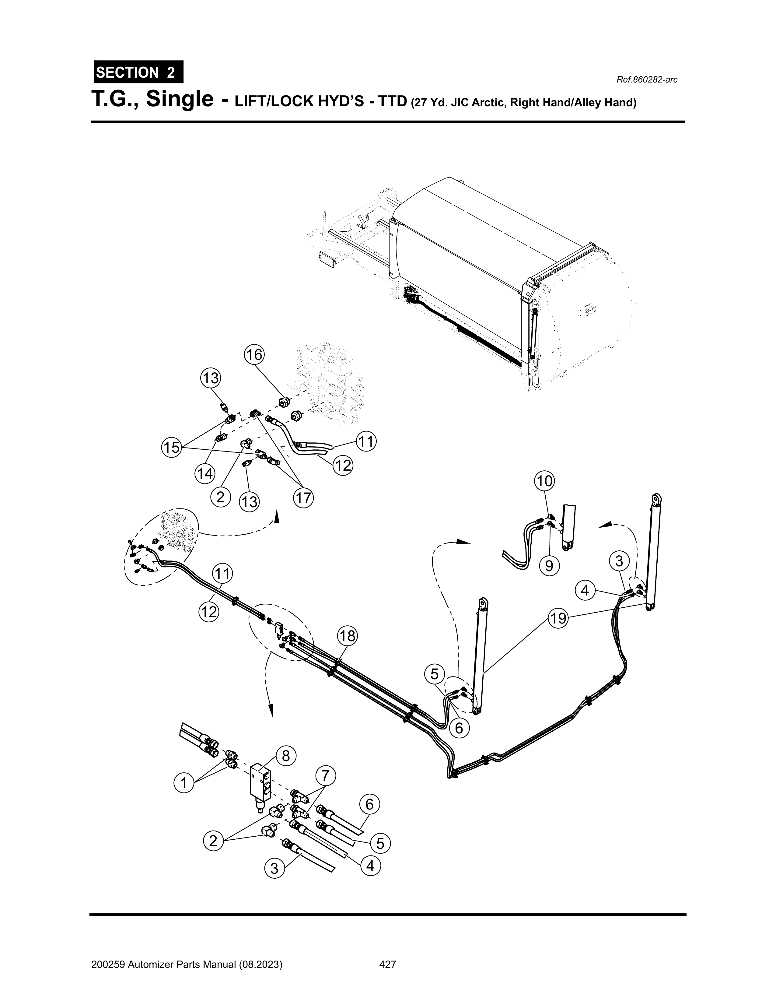 Automizer - PG 427 - Section 2 - T.G., Single - LIFT/LOCK HYD’S - TTD (27 Yd. JIC Arctic, Right Hand/Alley Hand)