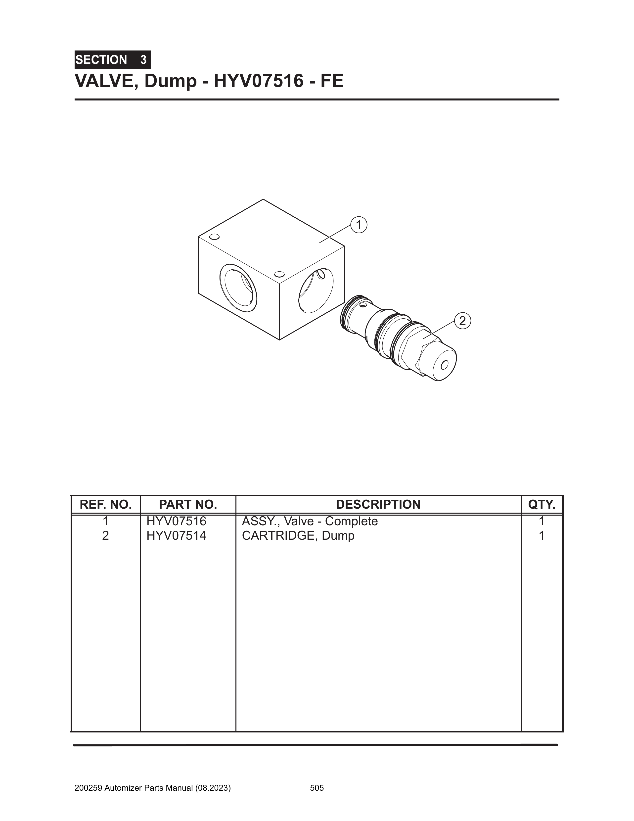 Automizer - PG 505 - Section 3 - VALVE, Dump - HYV07516- FE