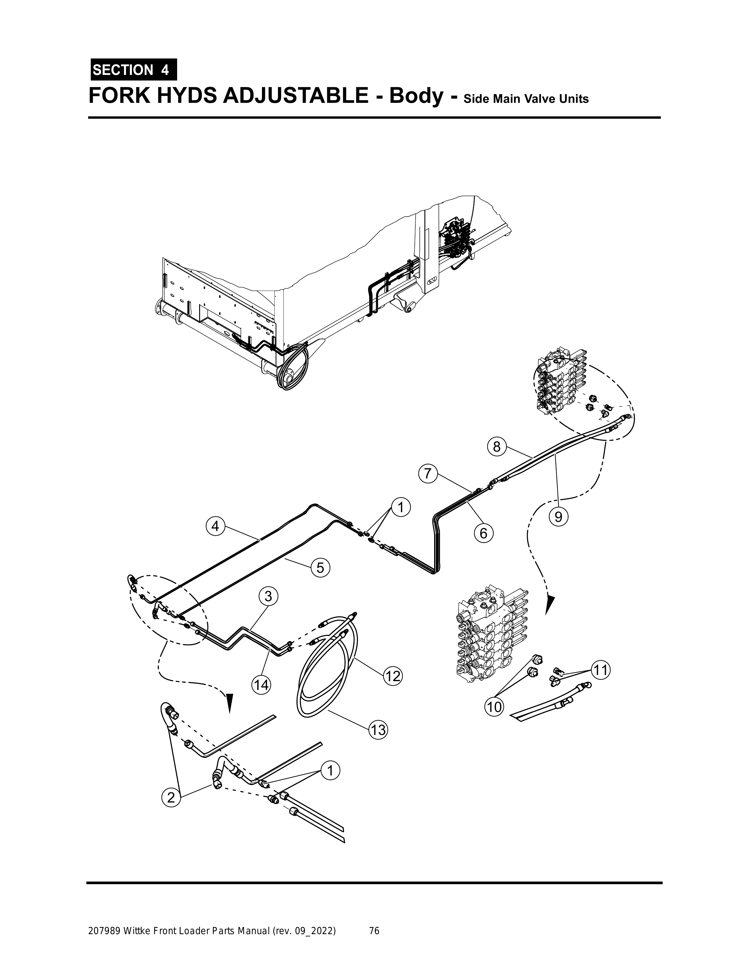 Wittke - All Models - PG 076 - Section 4 - FORK HYDS ADJUSTABLE - Body - Side Main Valve Units