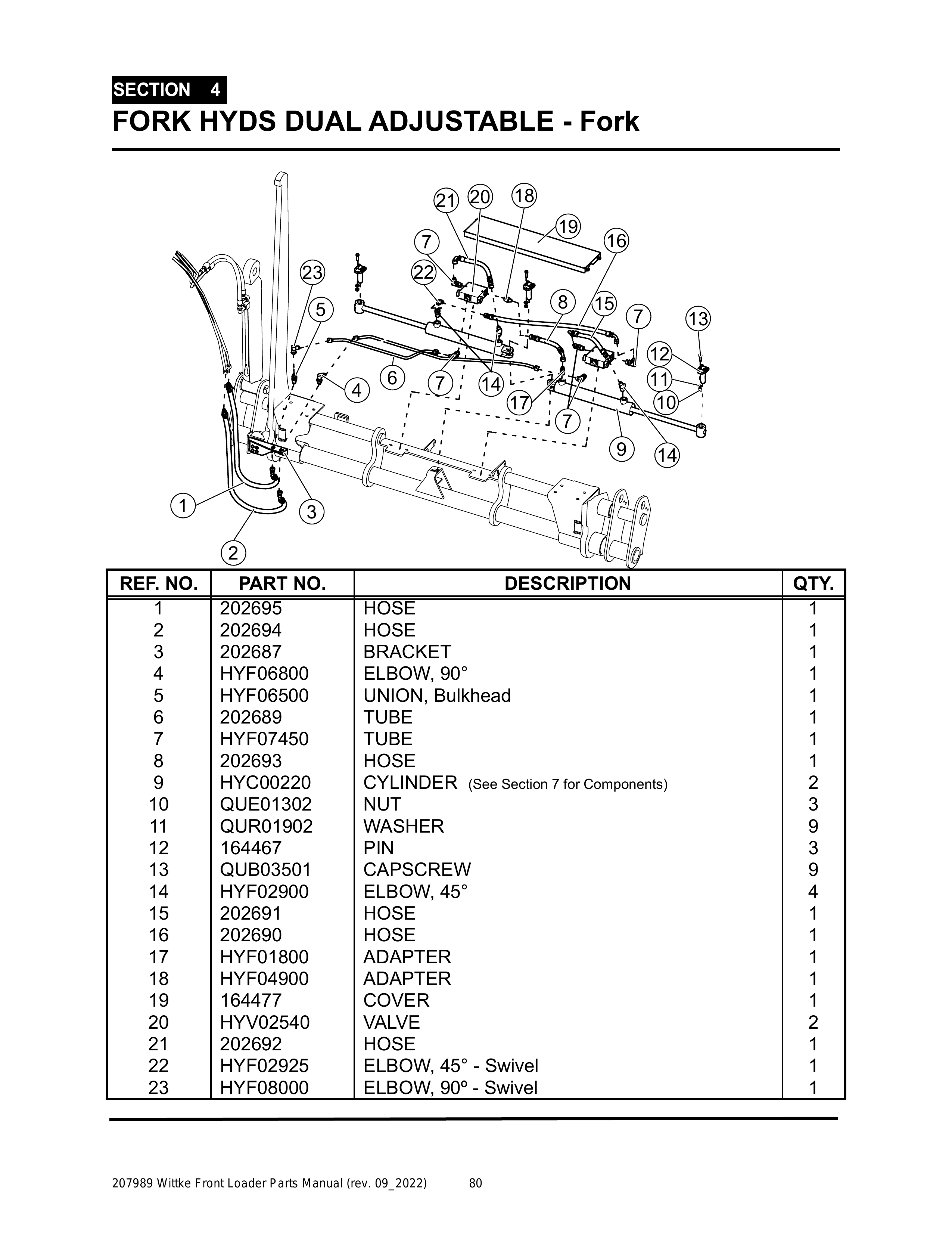 Wittke - All Models - PG 080 - Section 4 - FORK HYDS DUAL ADJUSTABLE - Fork