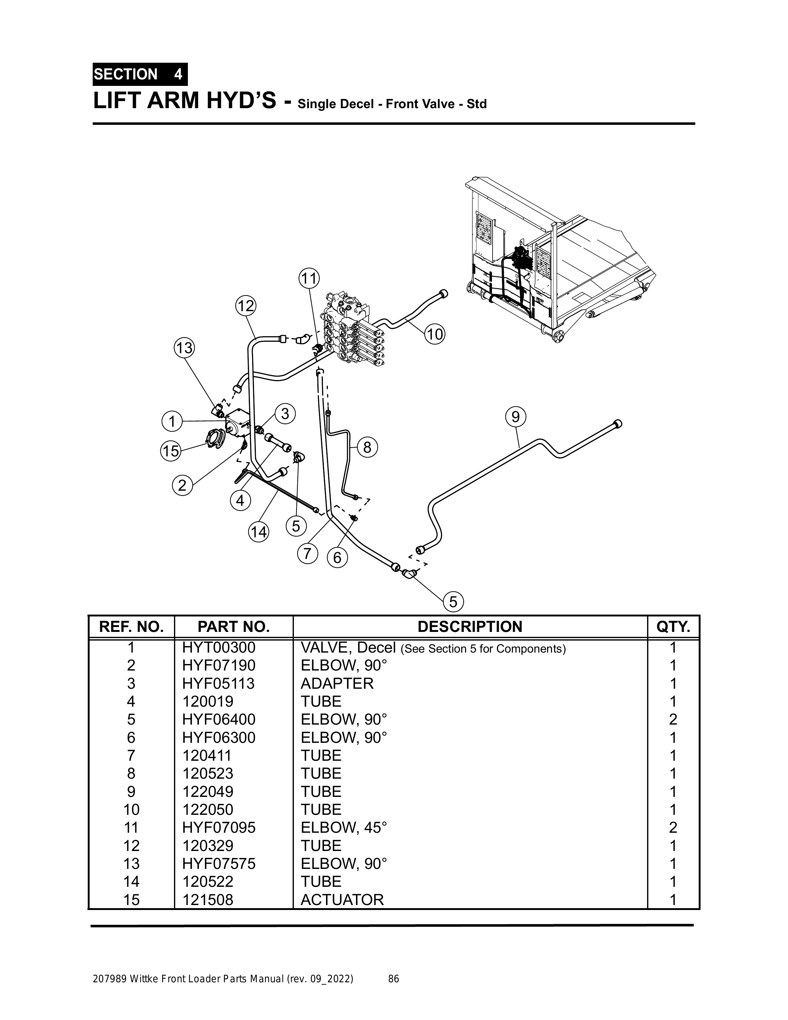 Wittke - All Models - PG 086 - Section 4 - LIFT ARM HYD’S - Single Decel - Front Valve - Std