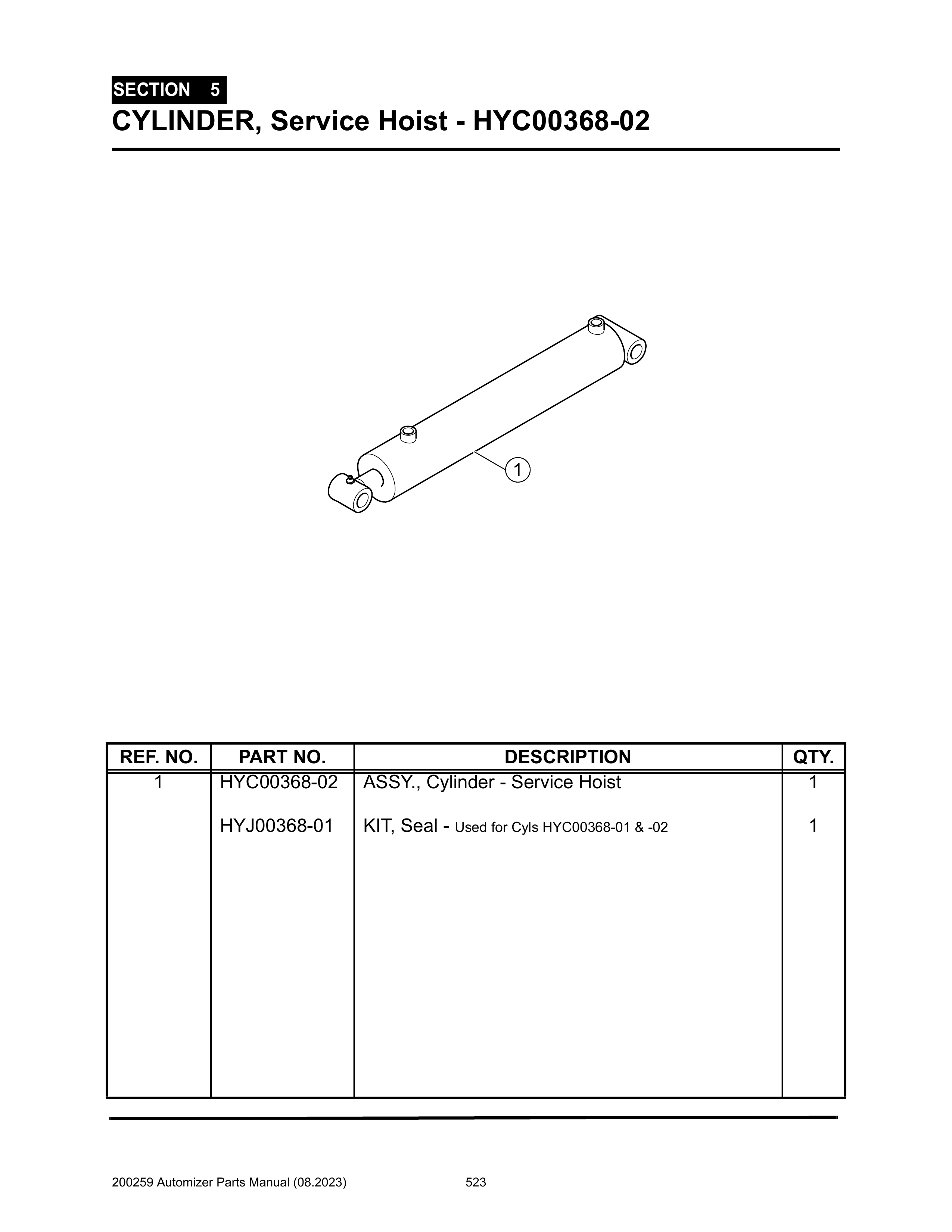 Automizer - PG 523 - Section 5 - CYLINDER, Service Hoist - HYC00368-02