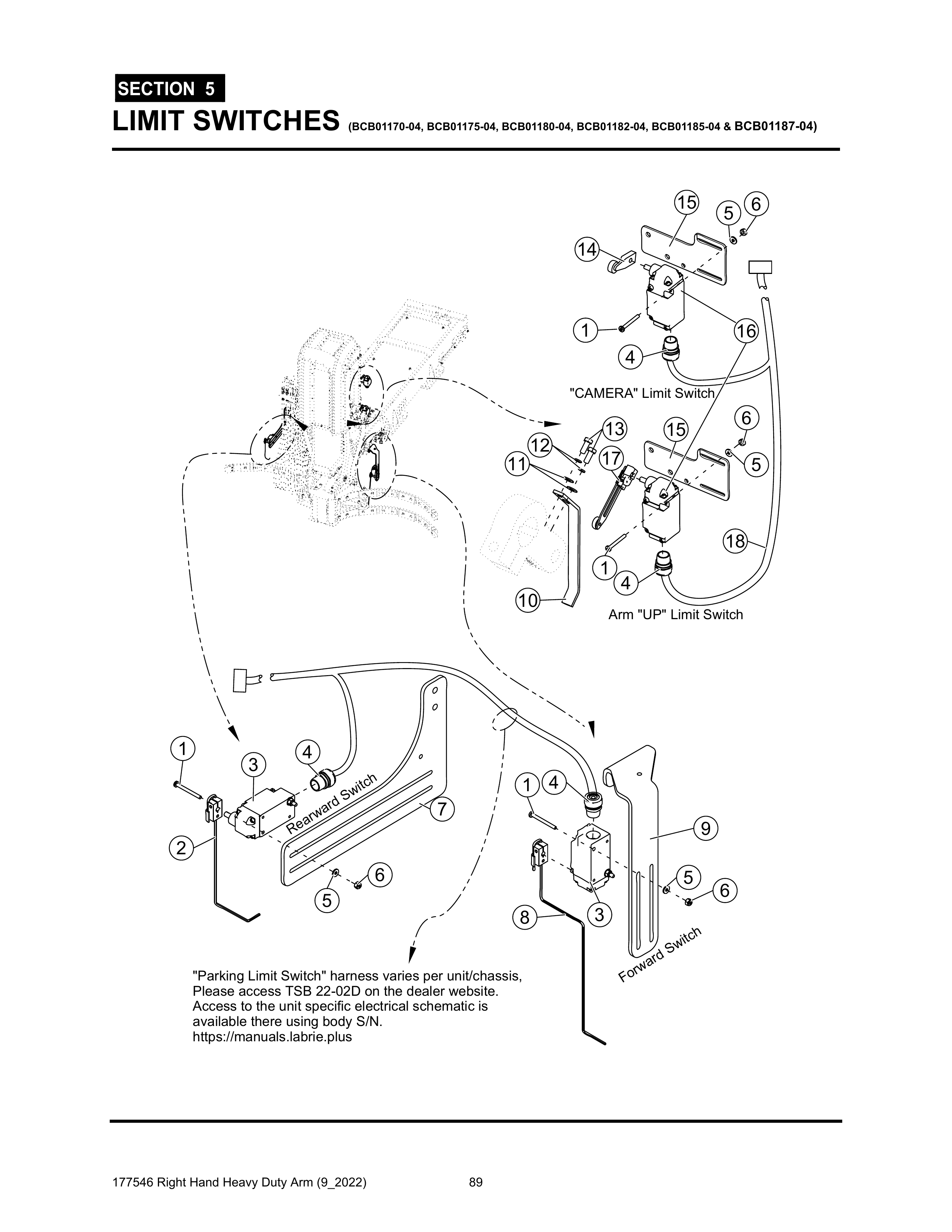 Section 5 - LIMIT SWITCHES (BCB01170-04, BCB01175-04, BCB01180-04, BCB01182-04, BCB01185-04 & BCB01187-04) - Heavy Duty RH Arm