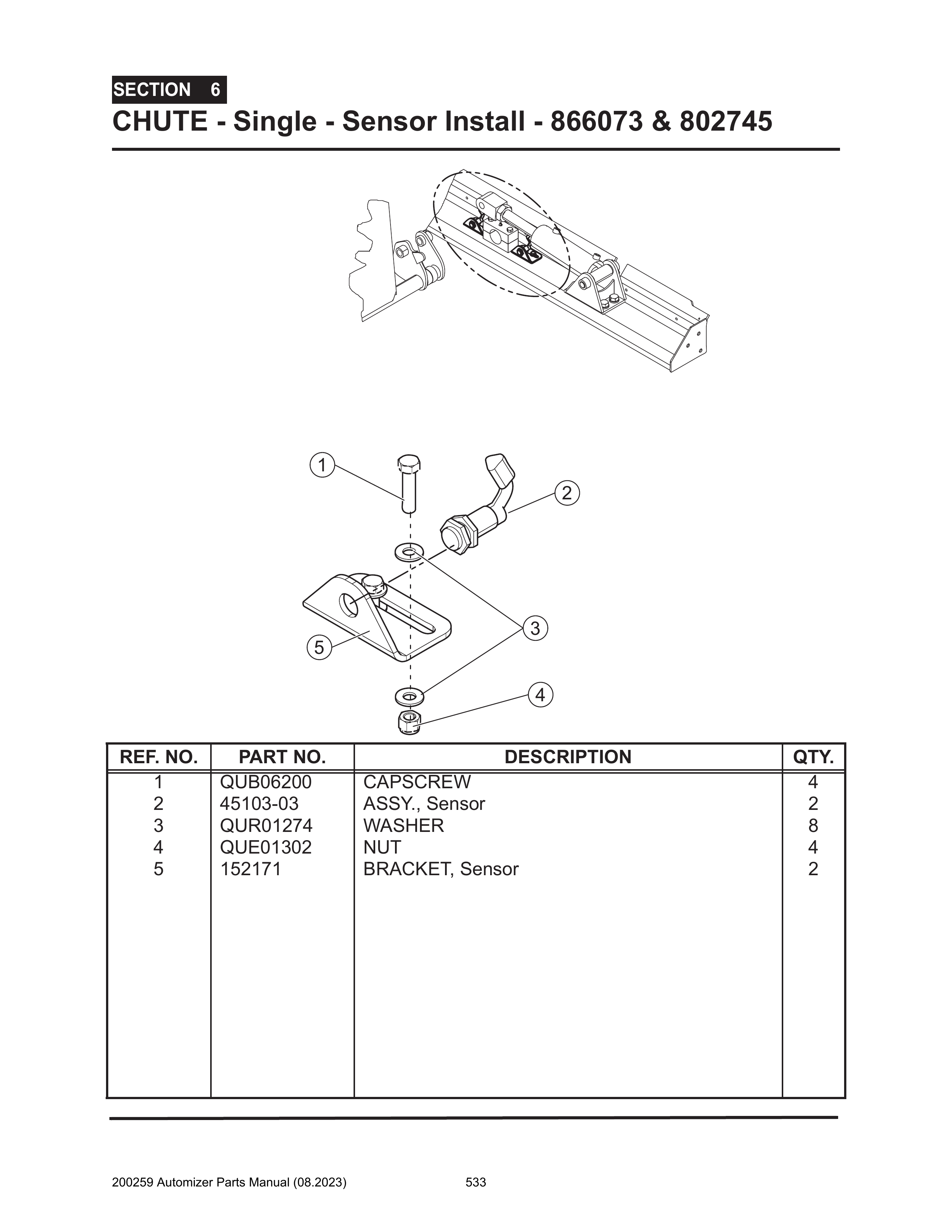 Automizer - PG 533 - Section 6 - CHUTE - Single - Sensor Install - 866073, 802745
