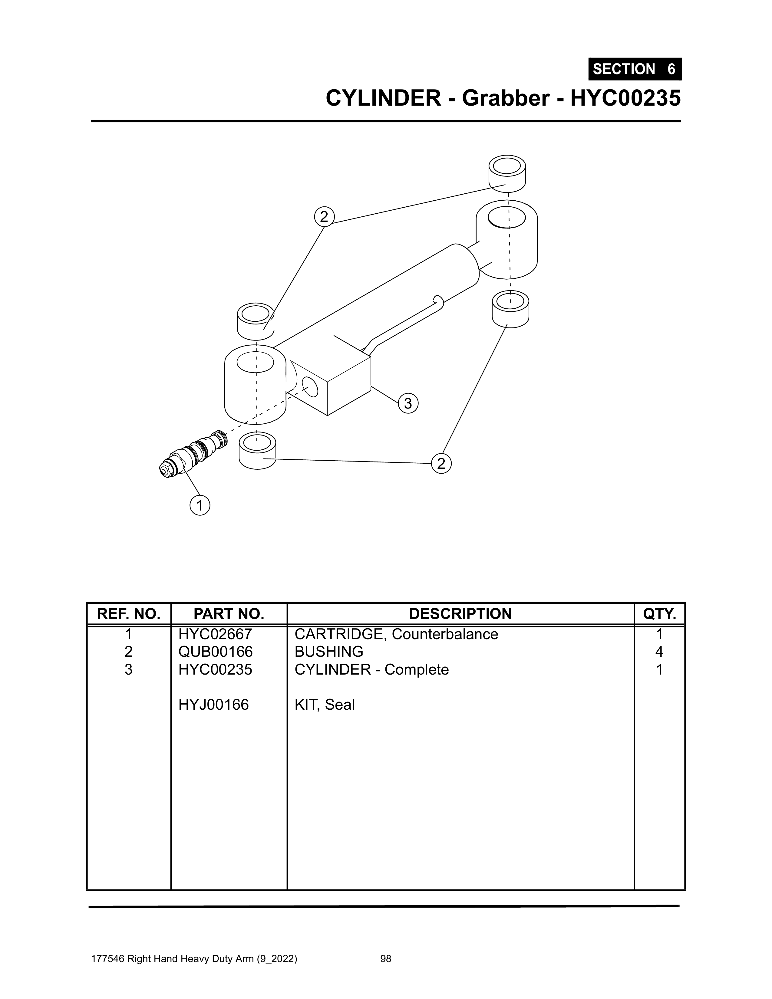 Section 6 - CYLINDER - Grabber - HYC00235 - Heavy Duty RH Arm