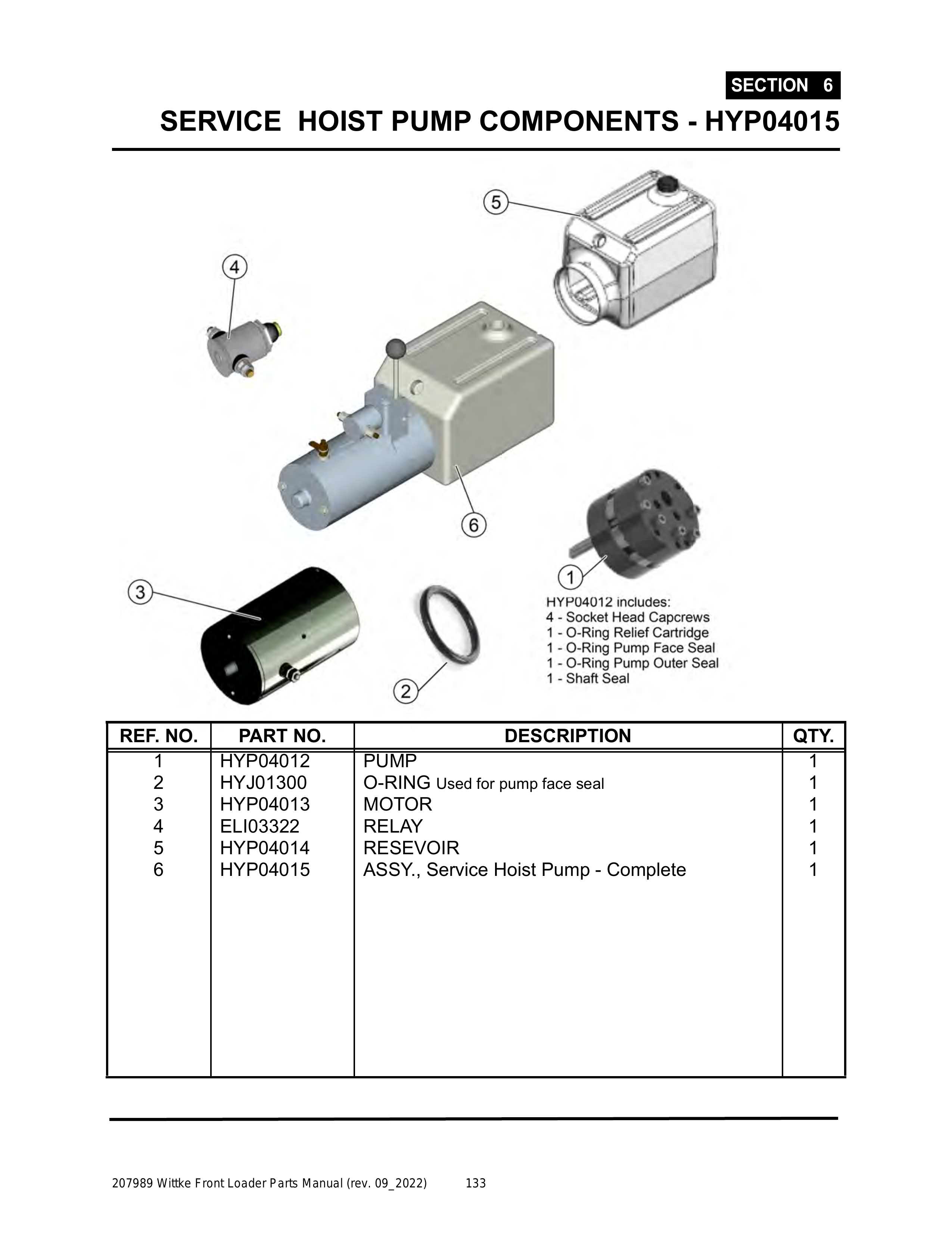 Wittke - All Models - PG 133 - Section 6 - SERVICE HOIST PUMP COMPONENTS - HYP04015